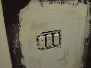Let me tell you, I felt damn good when I turned those two breakers on for the first time and nothing exploded. In fact, it all worked flawlessly – the unswitched 20 amp GFI outlet, the switched outlet, the new outlet in the hallway, the new outlet in the bedroom and the rewired old bathroom outlet and light, now being fed off a new 15 amp line. Lovely.