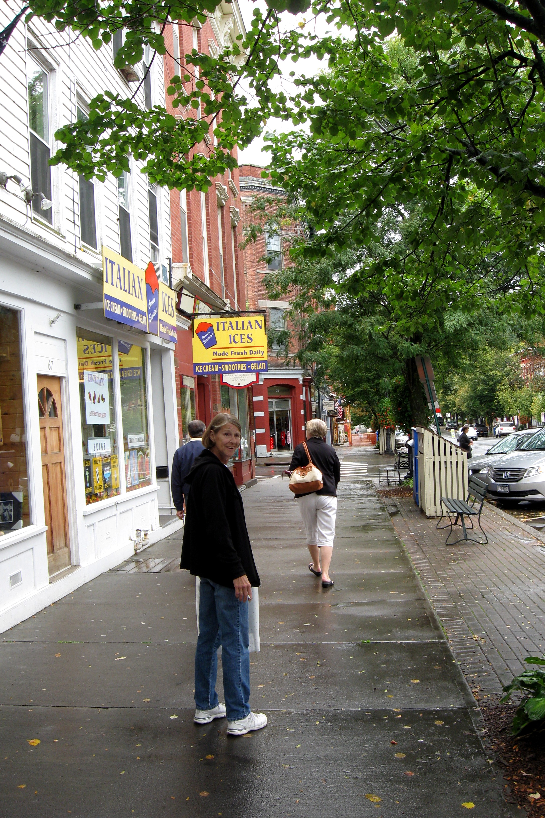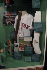 Was it worth the trip? Well, it was kinda on the way to California, so why not drop in? I think, though, that we were right in resisting the urge to make it a weekend trip all these years. From Boston it is about 5 hours each way – a LOT of driving for a 2-day weekend. A long weekend would be more feasible, but I suspect the place is mobbed on long weekends. It was actually pretty busy yesterday – surprisingly so given that it is after Labor Day and the weather was terrible (tornado watches and wind advisories all along the east coast, including Cooperstown). But I still found free on-street parking within four blocks of the museum and didn’t have to shove anyone out of the way to view Curt Schilling’s bloody sock. The weather made it a bit unpleasant to wander around the downtown area, but, all in all, we were patting ourselves on the backs for being so prescient as to plan a museum visit on a crappy day. As Yoda would say, very bright we are.