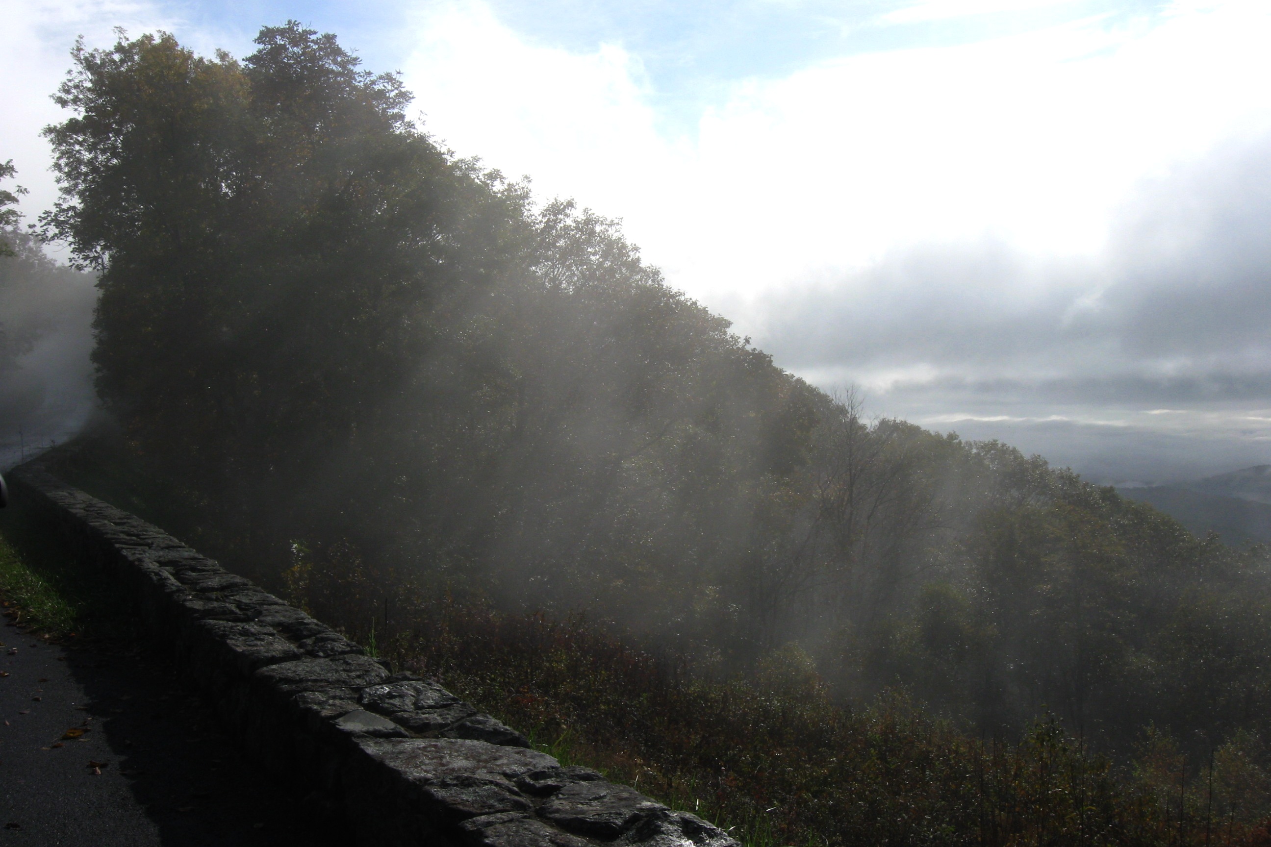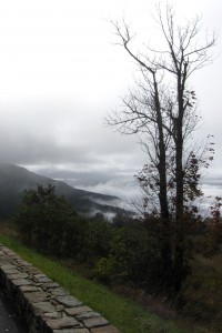 The plan for our 2-night stay in Luray, VA, was to take a leisurely road trip along Skyline Drive in Shenandoah National Park and, possibly, take in the famous Luray Caverns. But I learned that Jett is not a spelunker (her response when asked if she would like to tour the caverns was “No freaking way!”). As for Skyline Drive, the rain interfered. I went alone while Jett was napping, driving through rain and fog and thinking that this was probably going to be a huge waste of time and fuel. The park rangers at the entrance (whom I could barely see through the thick fog and mist) were not encouraging. They said that I would probably be in fog for the entire 34-mile segment that I was driving.
