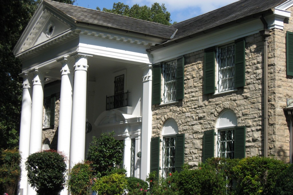 Our main tourist event yesterday, of course, was Graceland. While neither Jett nor I are huge Elvis fans, we do appreciate his music and visiting Graceland was on both of our bucket lists. We didn’t know quite what to expect – I don’t recall having ever seen a photo of it – but we weren’t disappointed. It isn’t cheap – we paid $27 each for just the mansion tour (we skipped the extended tour that includes his airplanes, his automobile collection and a bunch of other optional attractions that a true devotee would not view as optional). The ticket office, the parking lot, the RV park, Heartbreak Hotel and all of the miscellaneous attractions are located on the west side of US 51, leaving the 13 acres of Graceland itself unencumbered on the east side of the road. Shuttle buses take tourists to/from the mansion, which probably significantly reduces the carnage that would result from people taking pictures while strolling across a busy highway.
