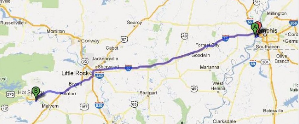 186 miles via I-40, I-30, US 70 and US 270. Cumulative distance: 1,972 miles.