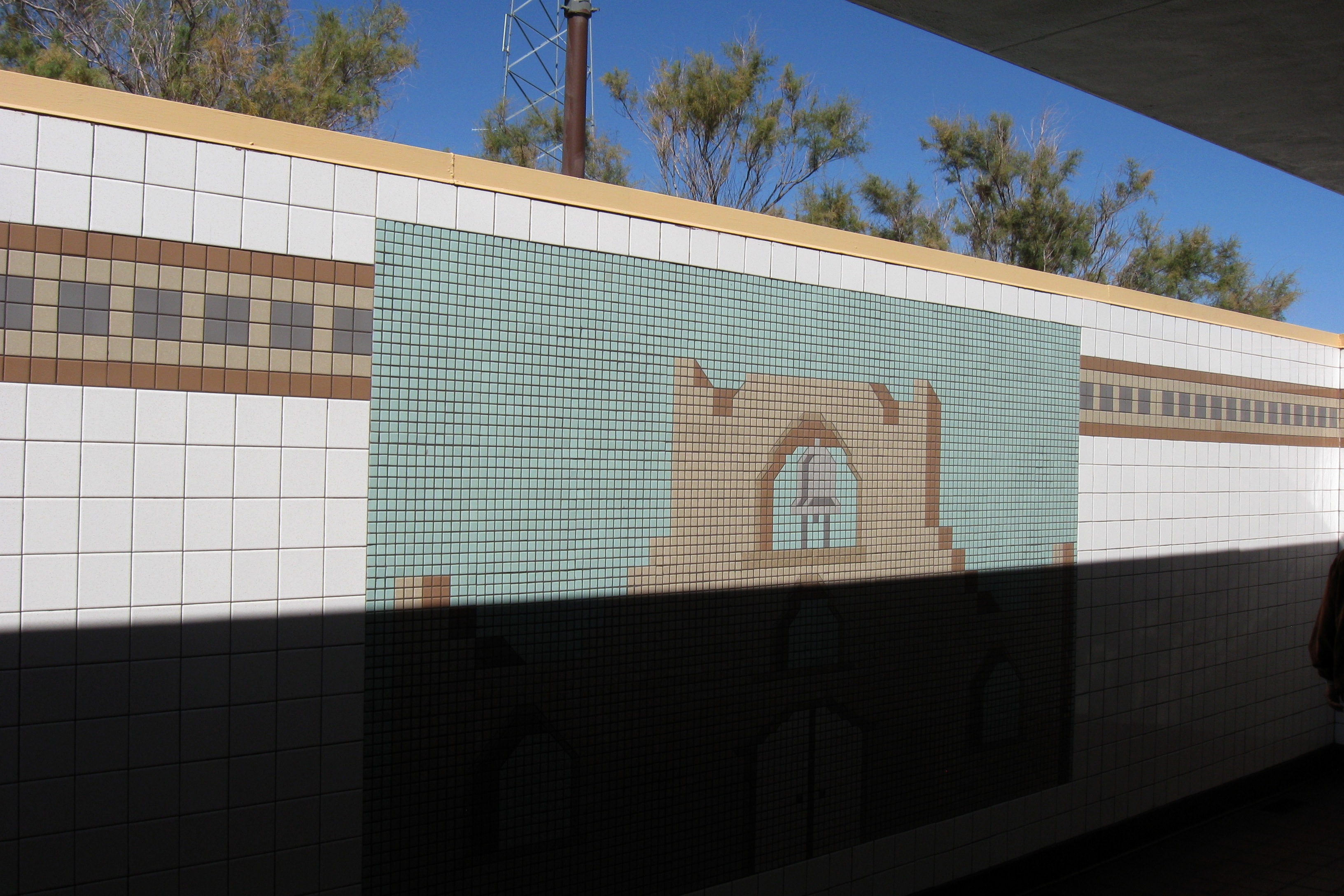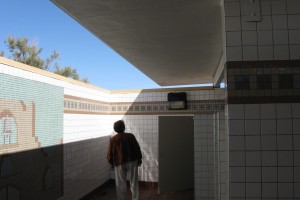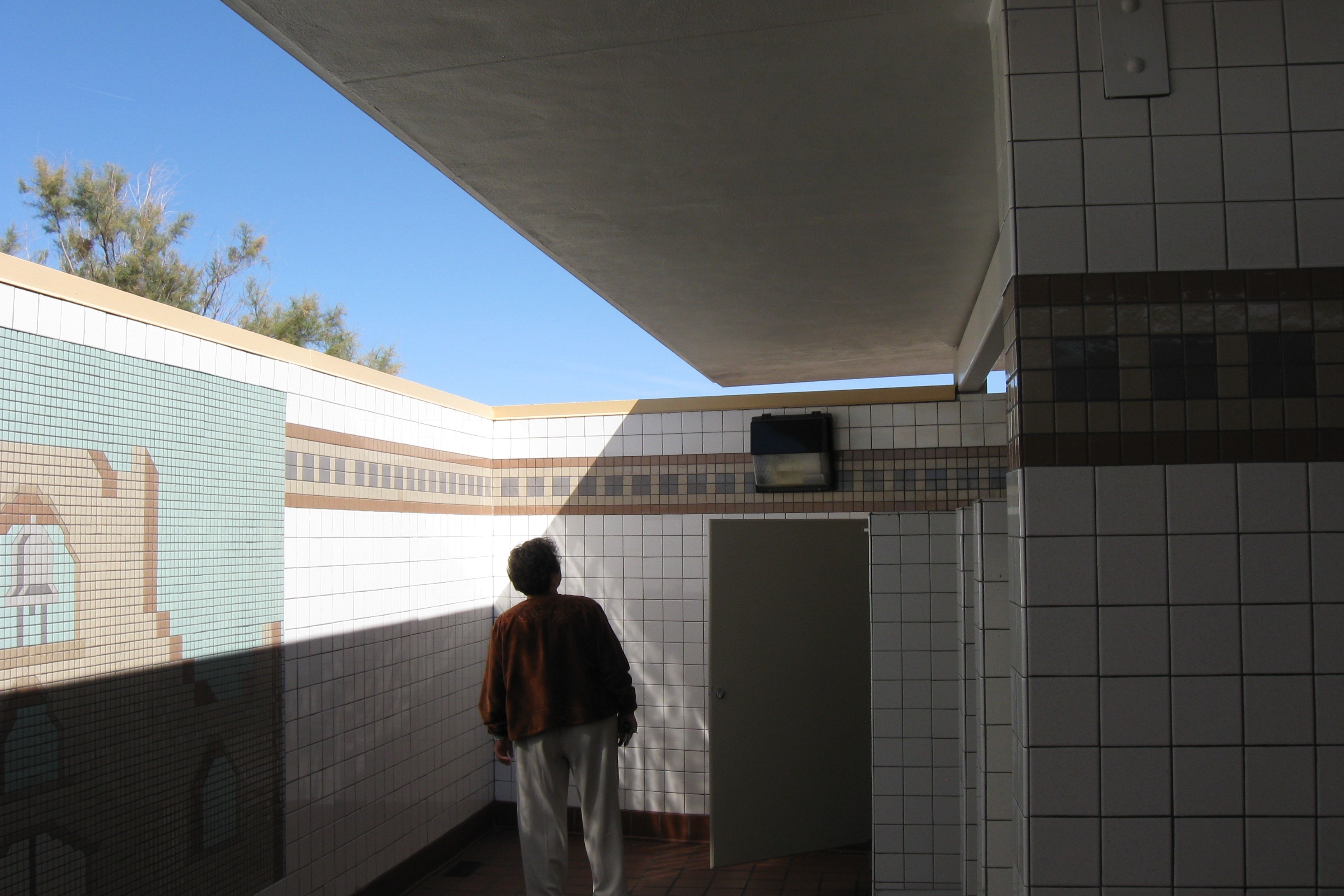 Jett was entranced by the open-air bathrooms with ceramic wall mosaics. I liked the trees and the arid landscape.
