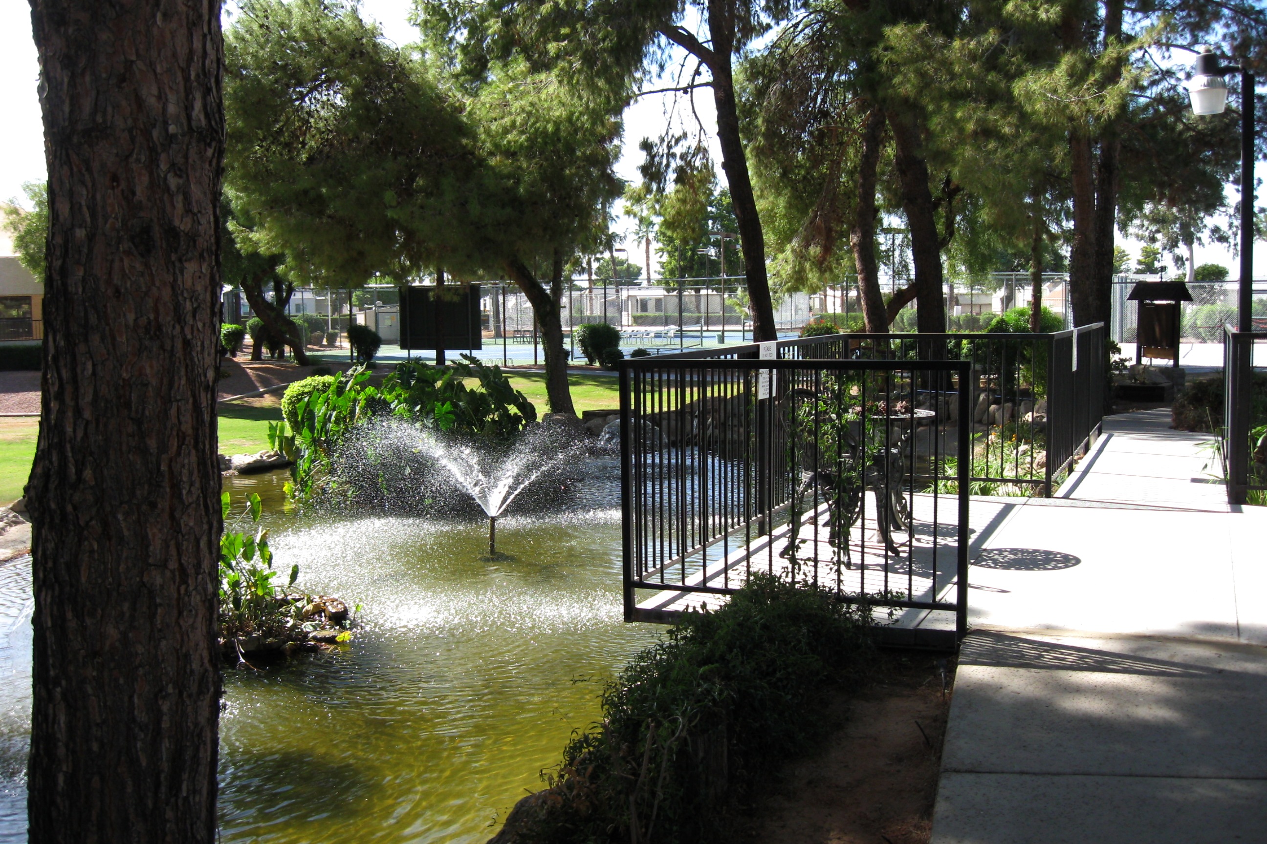 The grounds are well-maintained. The common area has a very nice pond and gazebo between the lawn bowling and the tennis courts. Very relaxing. A good place to read or write. And because it is so dry, there are very few insects.