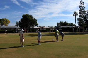 Paradise is larger than Rainbow’s End – about 1,000 sites versus about 300. Because it is larger it can support more activities. It has a wonderful pool, with water aerobics classes every morning and water volleyball every afternoon. The community center also sports lawn bowling courts, shuffleboard courts, tennis courts and a pickleball court (like table tennis played while standing on a very large table; see this video). There are also two large card rooms, a very large library, a post office, a woodworking shop, a ceramics shop, a sewing room and probably several other activities rooms that I didn’t see. It also has a cafe that is open for breakfast and lunch (weekdays only) and a huge laundry. There are lawn bowling leagues, tennis leagues, shuffleboard leagues, golf outings and who knows what else – a VERY active community. There are over 30 activities available every day.