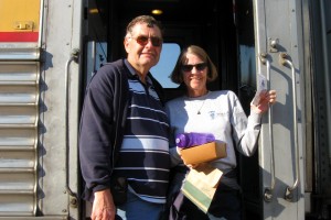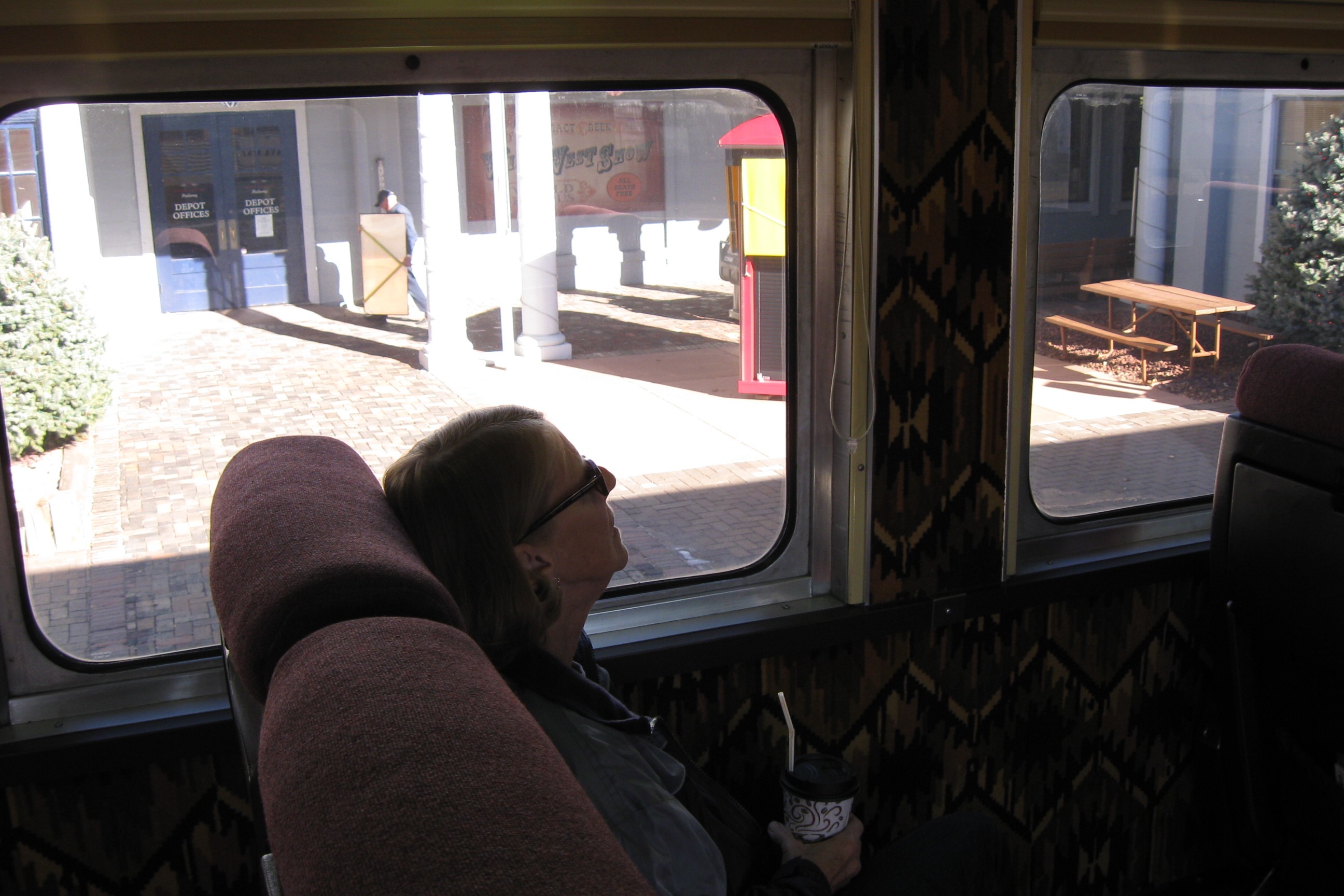 The train itself was very comfortable. It was pulled by a single diesel/electric locomotive and had six passenger coaches and one cafe car. We had a nearly-empty first class coach – there were 10 people in a car that seats over 100. Our PSA was a wonderfully droll woman who was working on her Master’s degree in Chemistry, was dating the fireman and had a daughter who was the PSA in the next car.