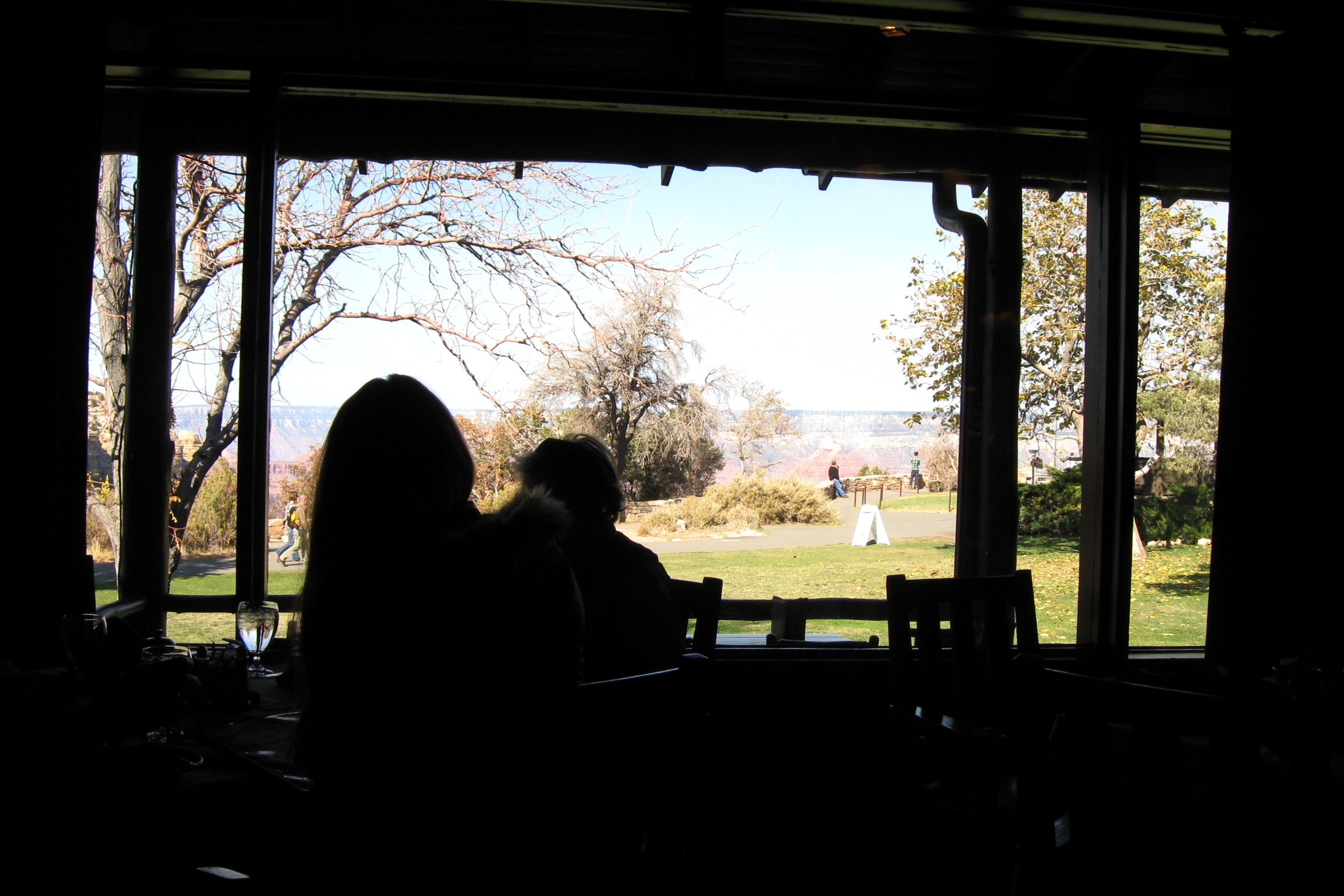 Once at the canyon we mostly walked the rim, but took time to have lunch at El Tovar, the very fine hotel in Grand Canyon Village. I had yellow-fin tuna with a prickly pear cumberland sauce that was superb, if surprisingly spicy – like blackened tuna, but with a glaze instead of a rubbing. Jett had a taco that was equally superb. The service was first-rate (Jett said it was “classic 5-star service”) and so was the view.