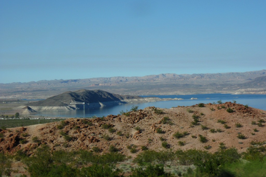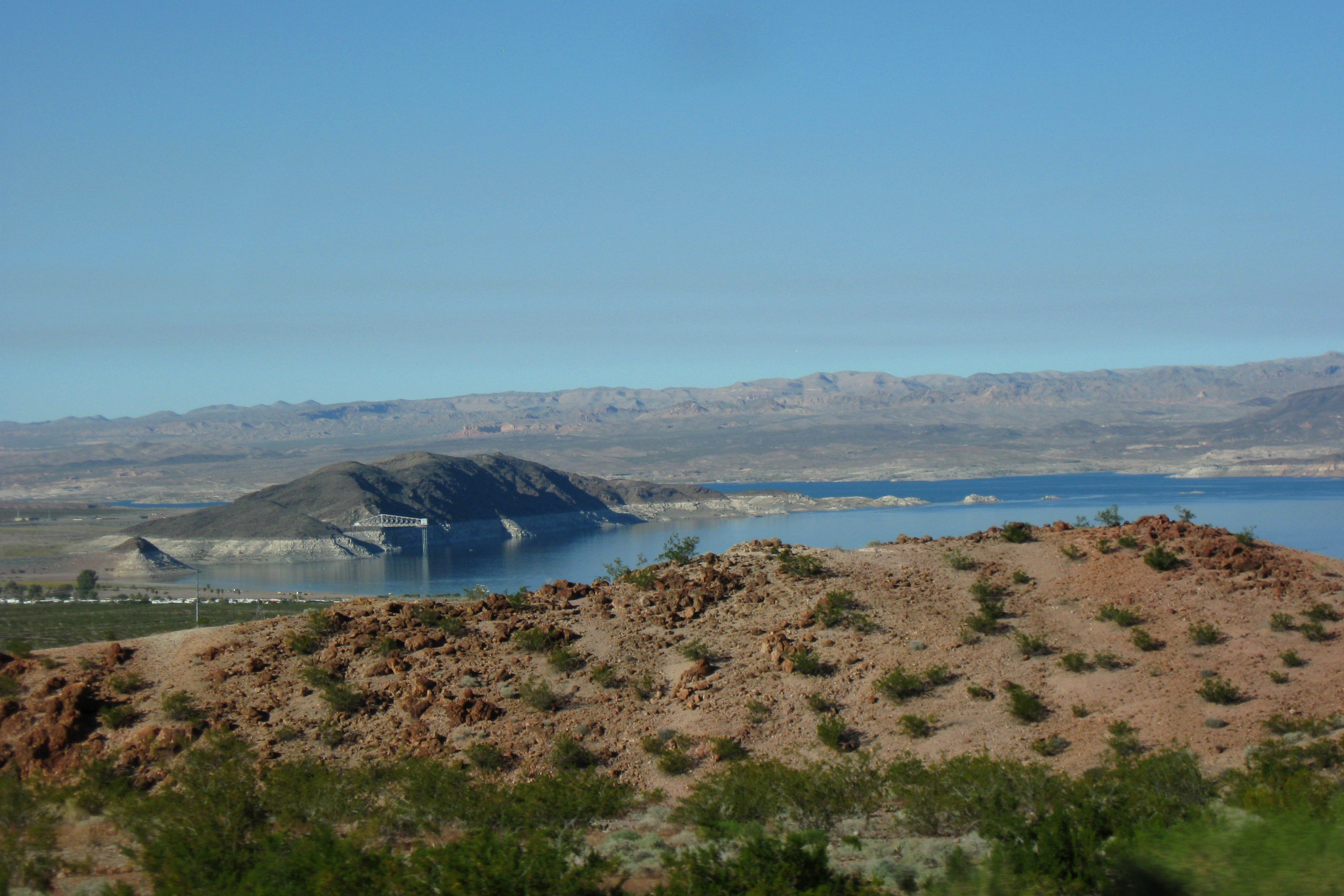 There are glimpses of Lake Mead, plus you get a nice view of Las Vegas as you enter from the south.