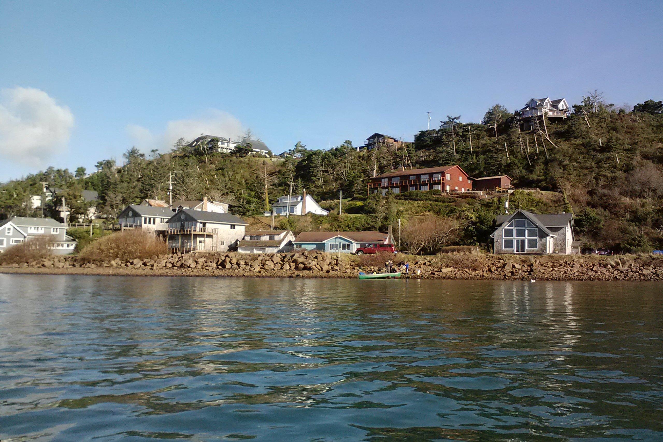 Anyway, it was fun. Jett, my mom, my sister and my nephew Scott joined us for lunch at The Schooner Restaurant which is right at the boat launch. I had a very fine rockfish-and-chips lunch. My sister then took Jett and me on a tour of the area, highlighted by dessert at Roseanna’s Cafe in Oceanside. Roseanna’s desserts are legendary and she didn’t disappoint. If you are in the area, try her Marionberry cobbler. Delicious!