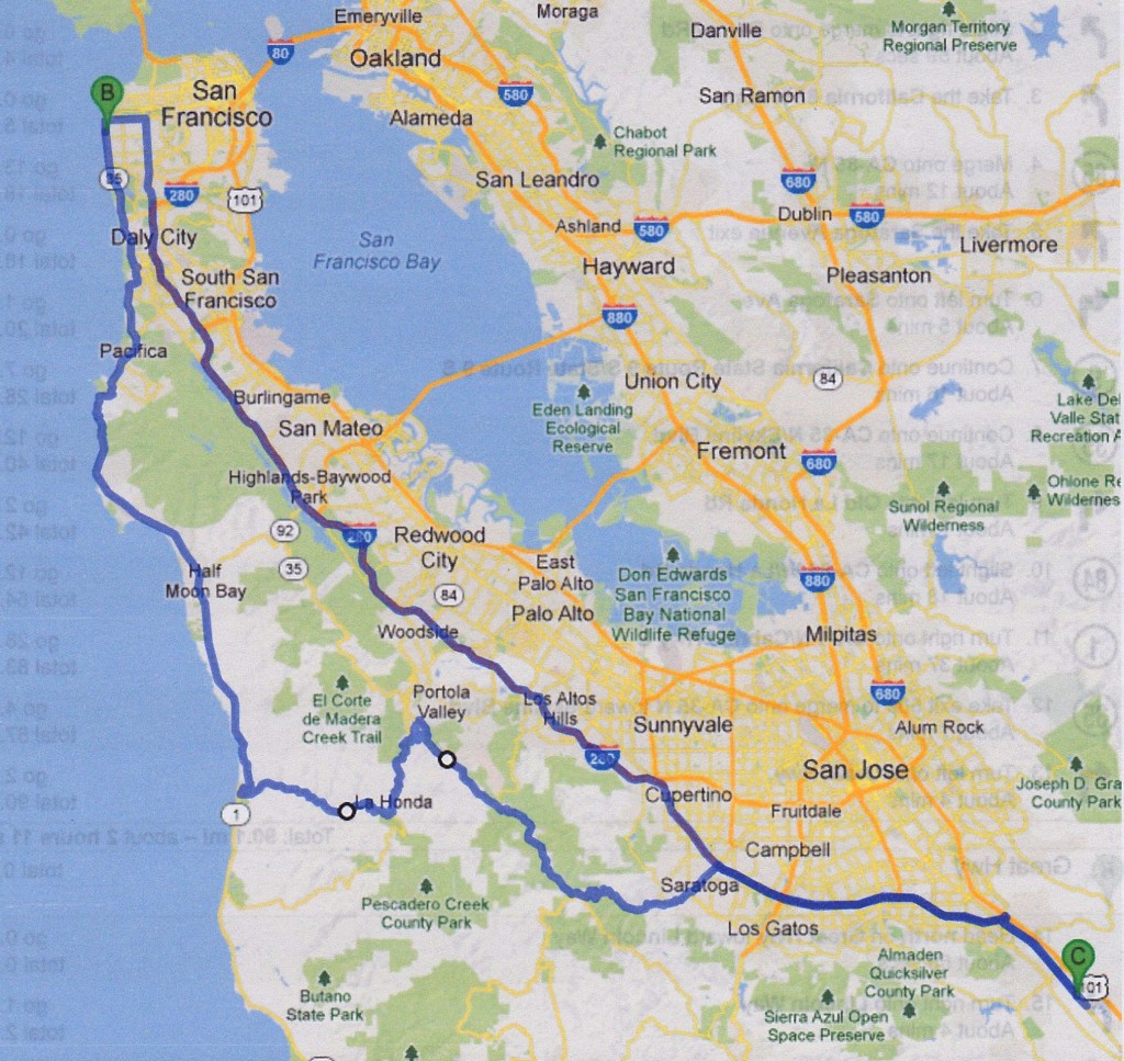 The hills west of Saratoga were higher and steeper than I expected. I was delayed for about 15 minutes while the police shut the road to set up operations to recover a car that had just gone over the edge. I don’t think I want to know the condition of that driver.