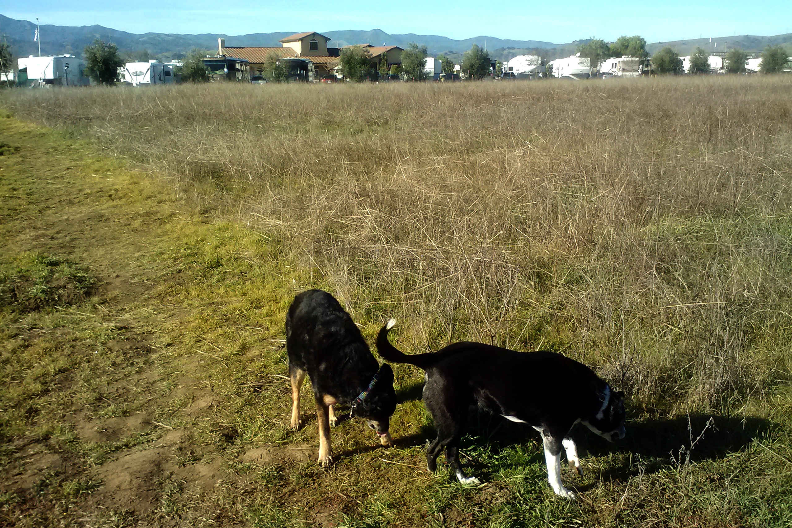 - Taking a walk in the field behind the RV park. This is the only place where Grace can run off the leash and she loves that.