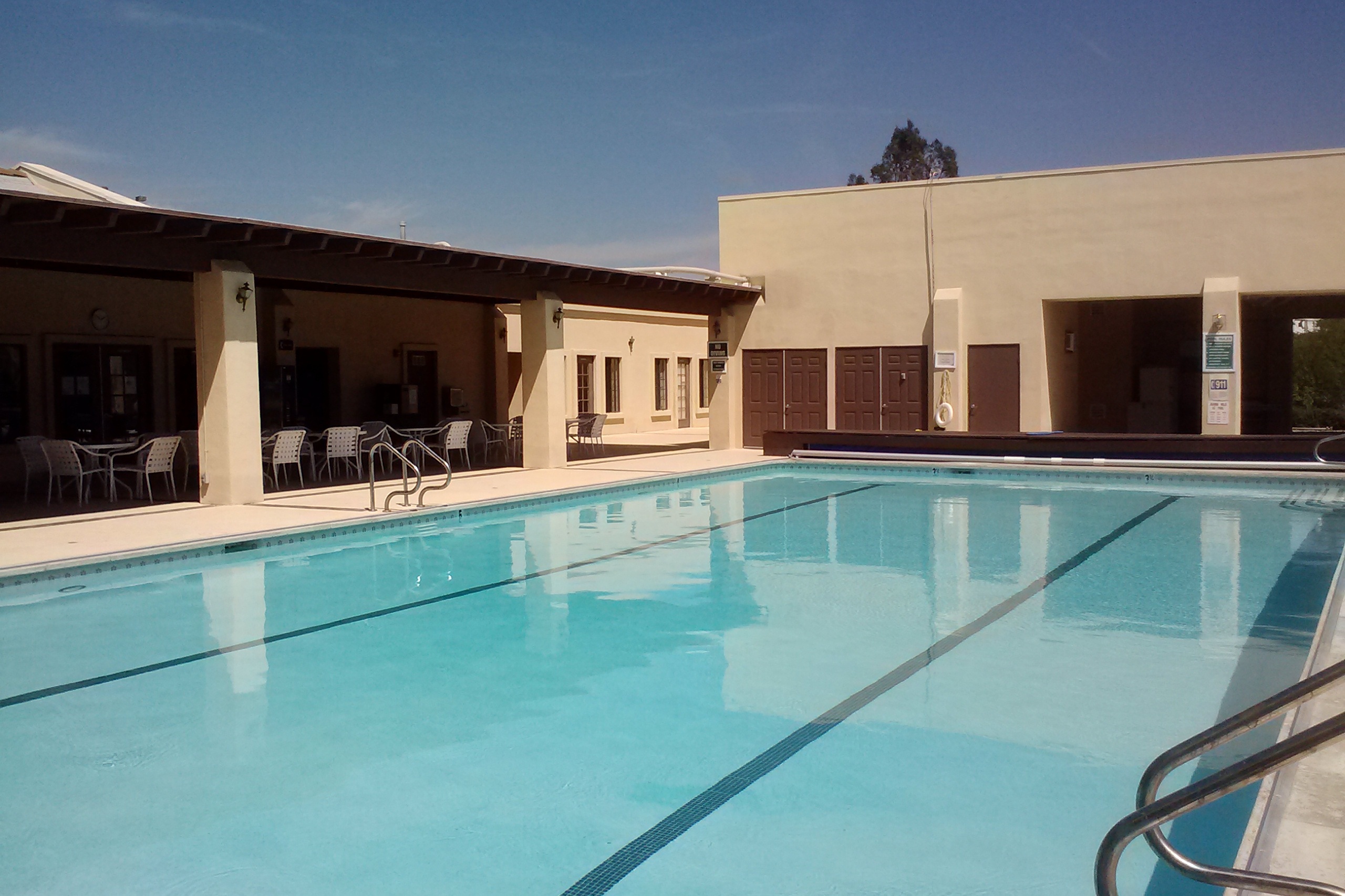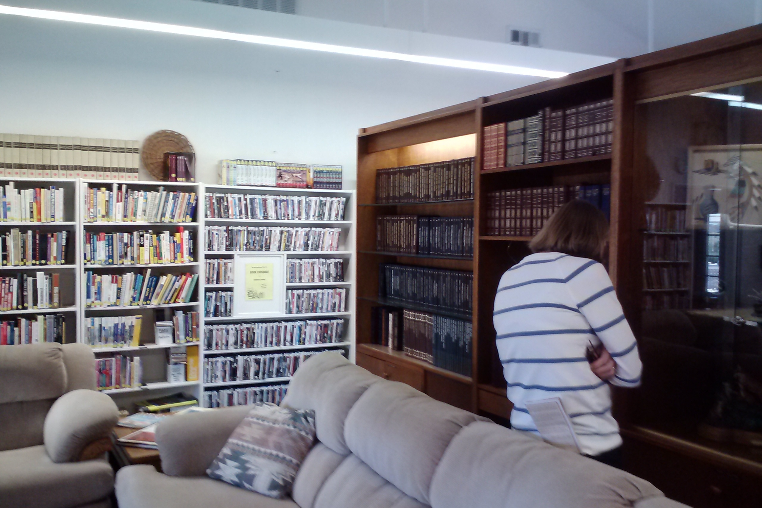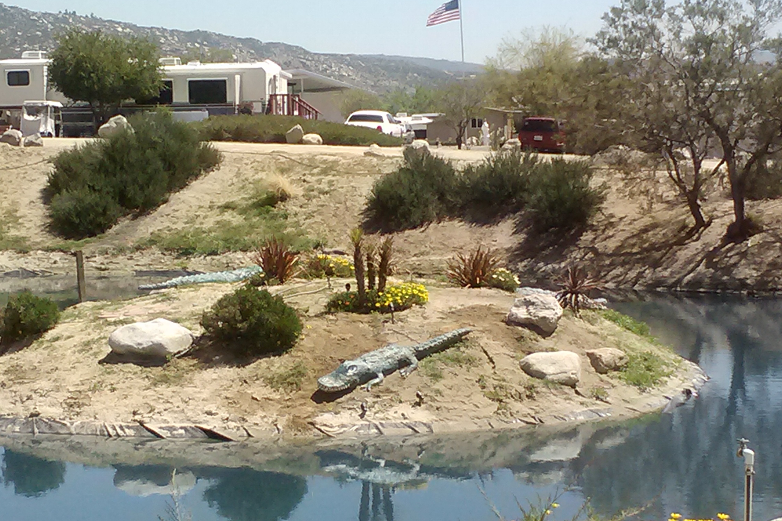 Between those restrictive rules and the location in southern California (too far from the grandkids), we weren’t seriously considering buying in. But we were very interested in seeing the place. Our guide gave us a wonderful tour and we can see why residents love the place. It has great amenities, including a great community center building that houses the best lending library we have seen anywhere, a sewing room that is large enough for 10 or more, a gym, a billiards room, a great swimming pool and hot tub and, nearby, tennis courts, pickle ball courts, a shooting range and several ponds. There is also a superb woodworking shop (with some very talented woodworkers) and – this is unique – an RV repair shop stocked with heavy jacks, welding tools and parts.