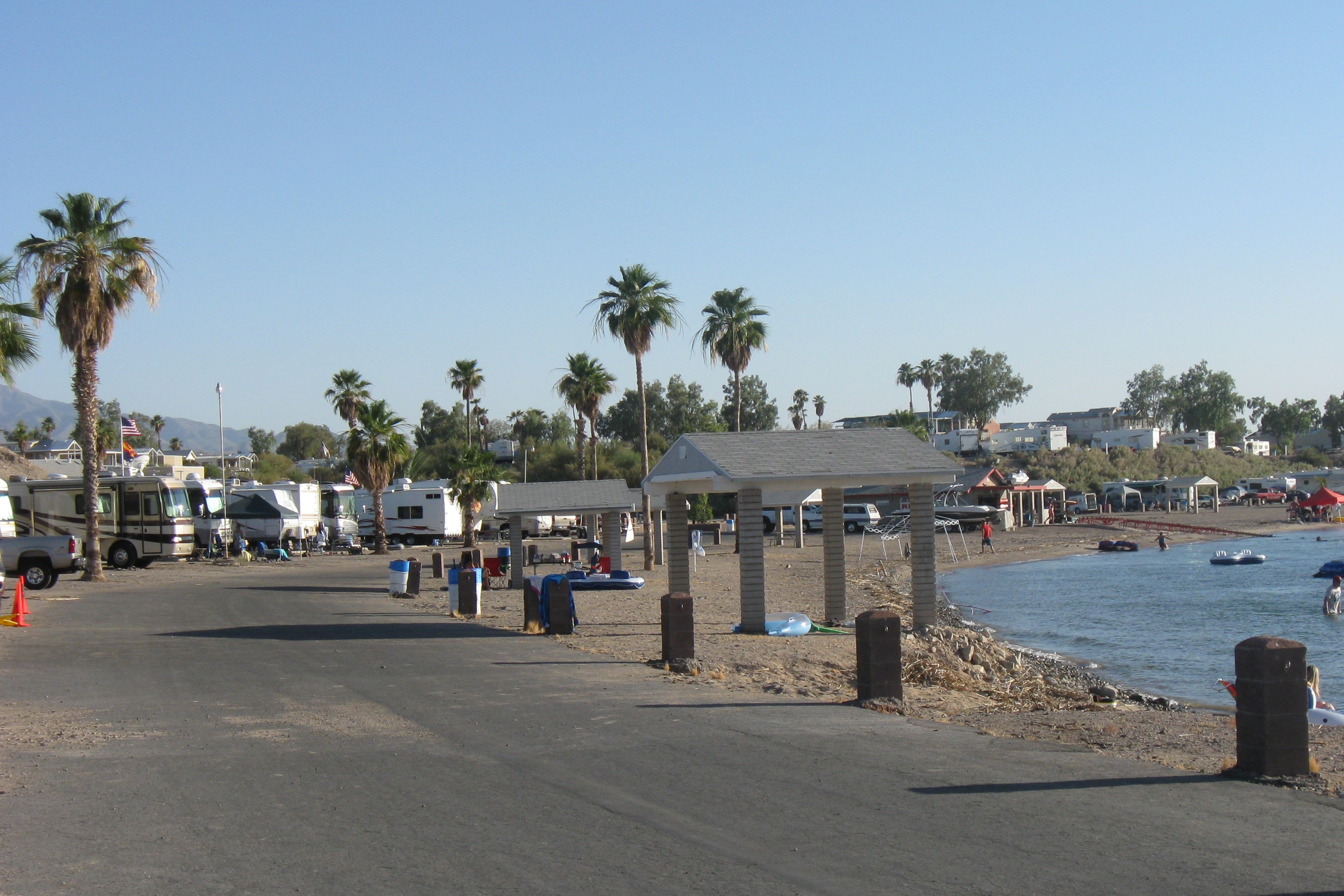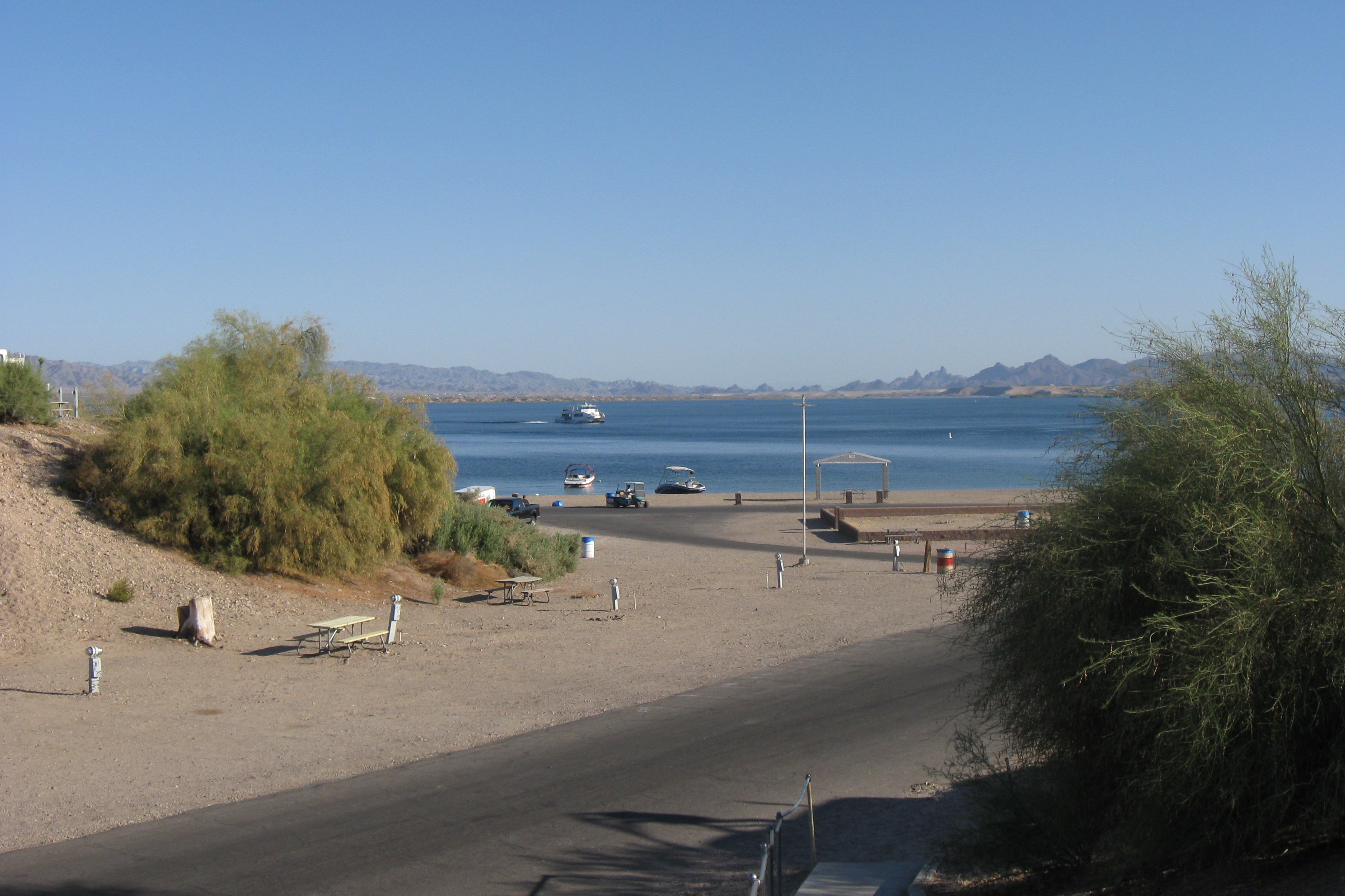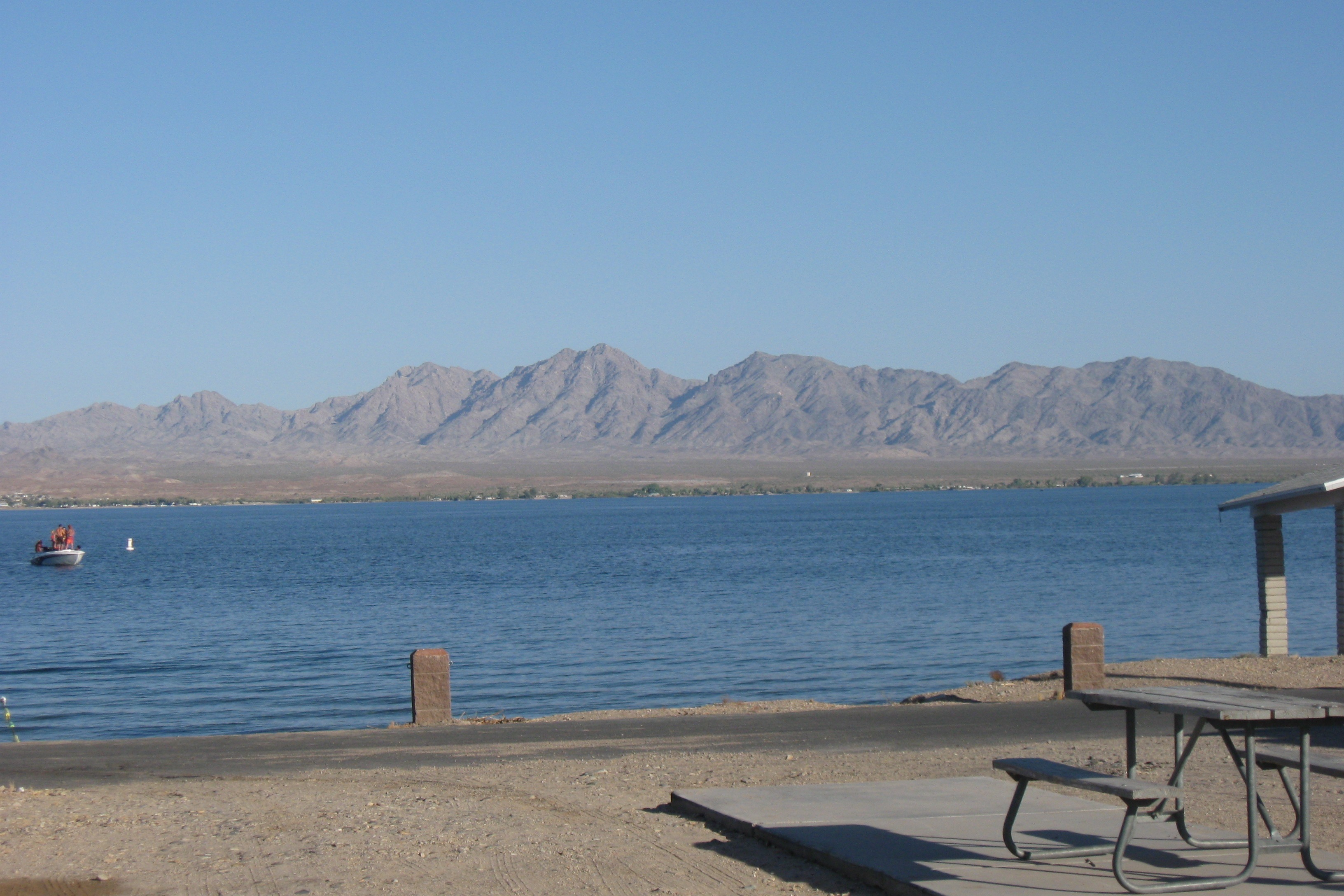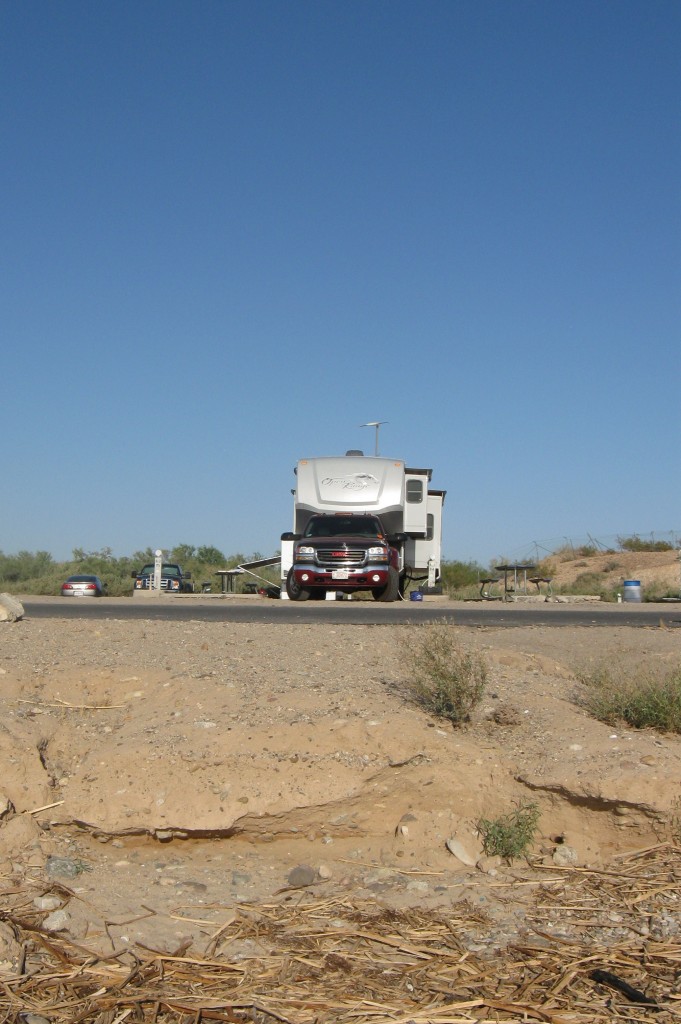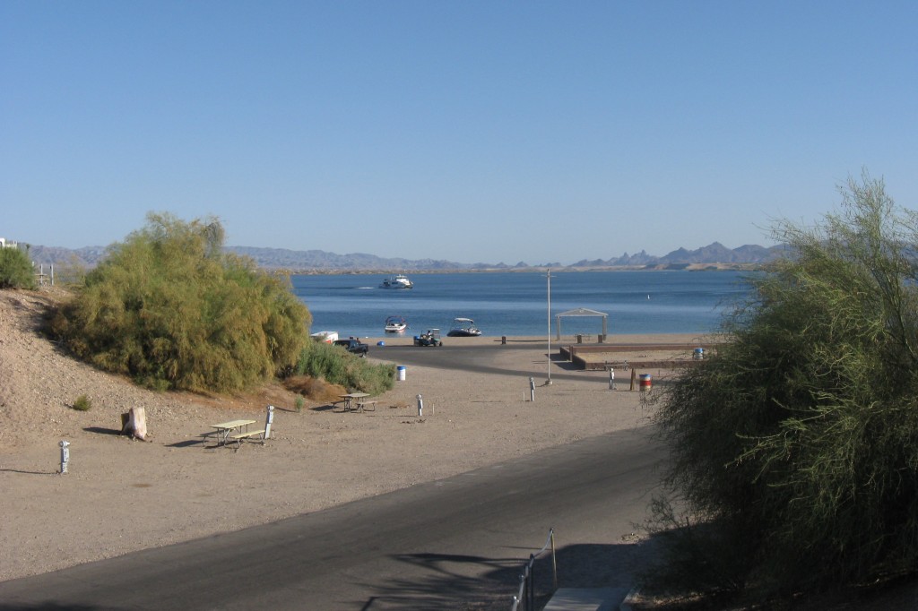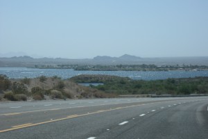 Other than that 10-mile uphill climb east of Indio, which made me watch my temperature gauges very carefully, the trip to Lake Havasu City was uneventful. The truck’s A/C was up to the task and kept us all comfortable. CA 62 was flat, but followed the terrain, which made for some interesting dips in the road. We crossed into AZ at Parker and I have to say that the Colorado River at that point is uninspiring. It is less impressive than the Hudson or even the Merrimac. I guess most of the water has been diverted before it gets to Parker.