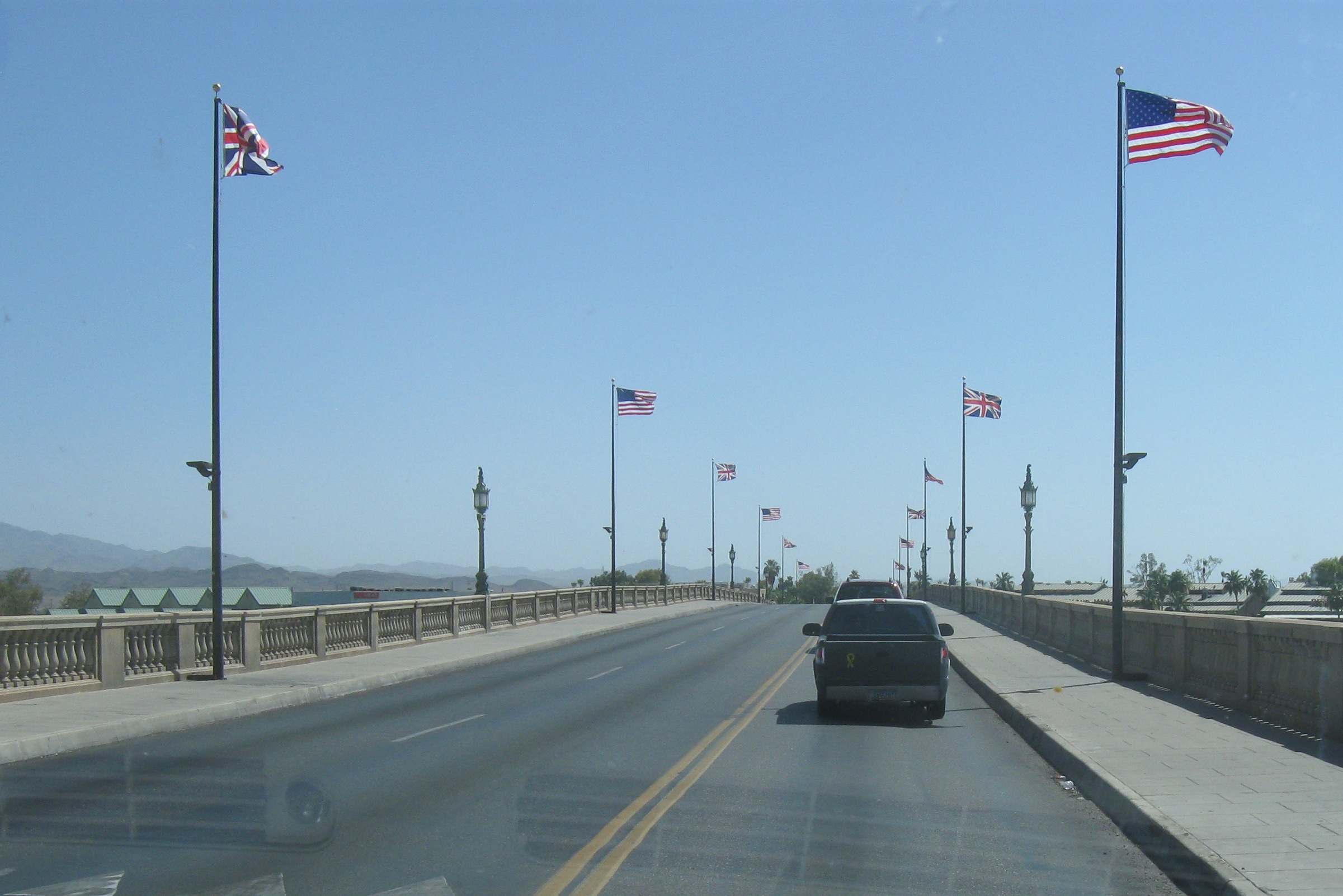 We had to cross the London Bridge to get to the Crazy Horse Campground in Lake Havasu City. From the road, the London Bridge is, like the Colorado River, unimpressive. If they hadn’t lined it with flags you would never know that you were on a special bridge. I was hoping to get a side view of it from the campground, but didn’t.