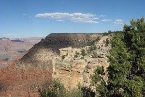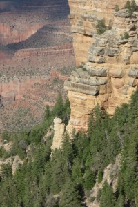 So this time we drove. The south rim is about an hour from Williams and it is an easy, flat route. Once we got there we stopped at the main visitor’s center, which is just a bit northeast of the train depot and Grand Canyon Village where we visited in November. We spent about 30 minutes at the rim at the visitor’s center, then drove about 10 miles east along the rim, stopping at various overlooks to take some photos. It was a beautiful day and the canyon was looking fine.