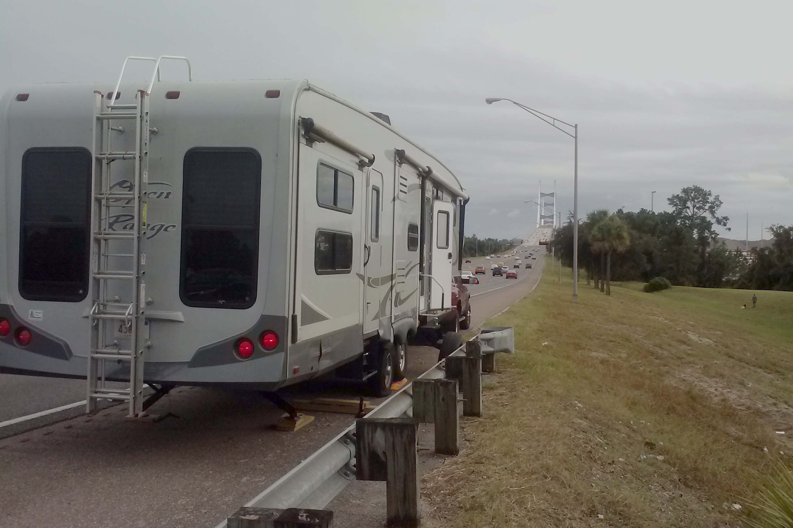 Then, 20 miles later, just as we were approaching the Danes Point Bridge on the I-295 East Beltway around Jacksonville (which, ironically, we took on the advice of the gentleman at the rest area)… BLAM!!!