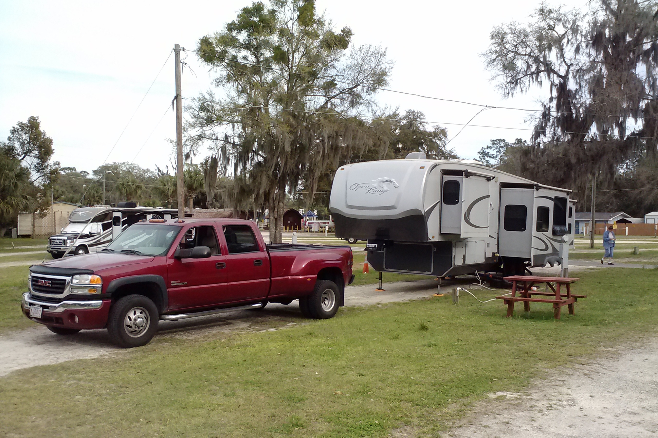 Due to the length of the trip we had to make a refueling stop, which I chose to do after just 166 miles, in an area that we had scoped out on our trip to Spring Hill in December. But the place I picked had just recently converted its diesel pumps into ethanol-free pumps (due, presumably to a larger profit margin). So we had to find another gas station. That wasn’t too difficult, but getting back onto US 98 north required a little detour. Detours always make me nervous because I hadn’t fully researched the route for low bridges and other impediments to big rigs. But this one wasn’t too bad.