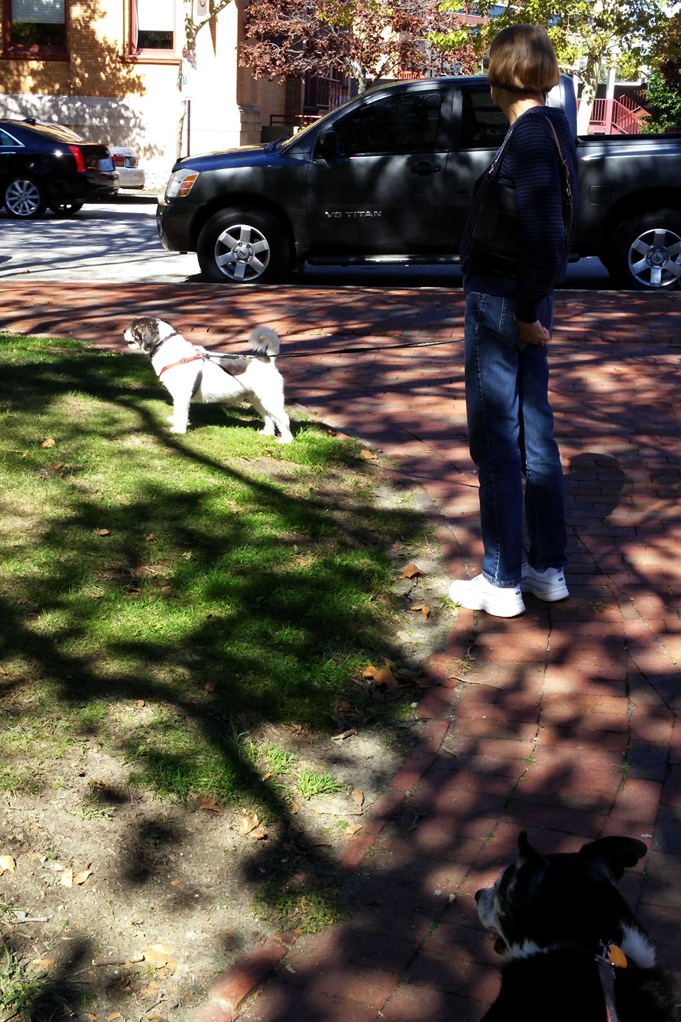 There is nothing good to say about spending 3 days in a hotel, with dogs, sniffling and sneezing, except, perhaps, that the dogs seemed very comfortable on the bed.We had originally planned on spending a day visiting the mansions in Newport, but the colds killed that. We did rally enough to take a day trip into Providence, the highlight being the search for the Johnson & Wales bookstore (Jett’s son had attended J&W), which was surprisingly difficult to find. Our GPS deposited us a mile from the actual location. I had to use my smartphone GPS to ferret it out. But we did get to see more of the city than we had expected. And, as cities go, it was very pleasant with some interesting buildings. We also found a downtown urban park that we liked.