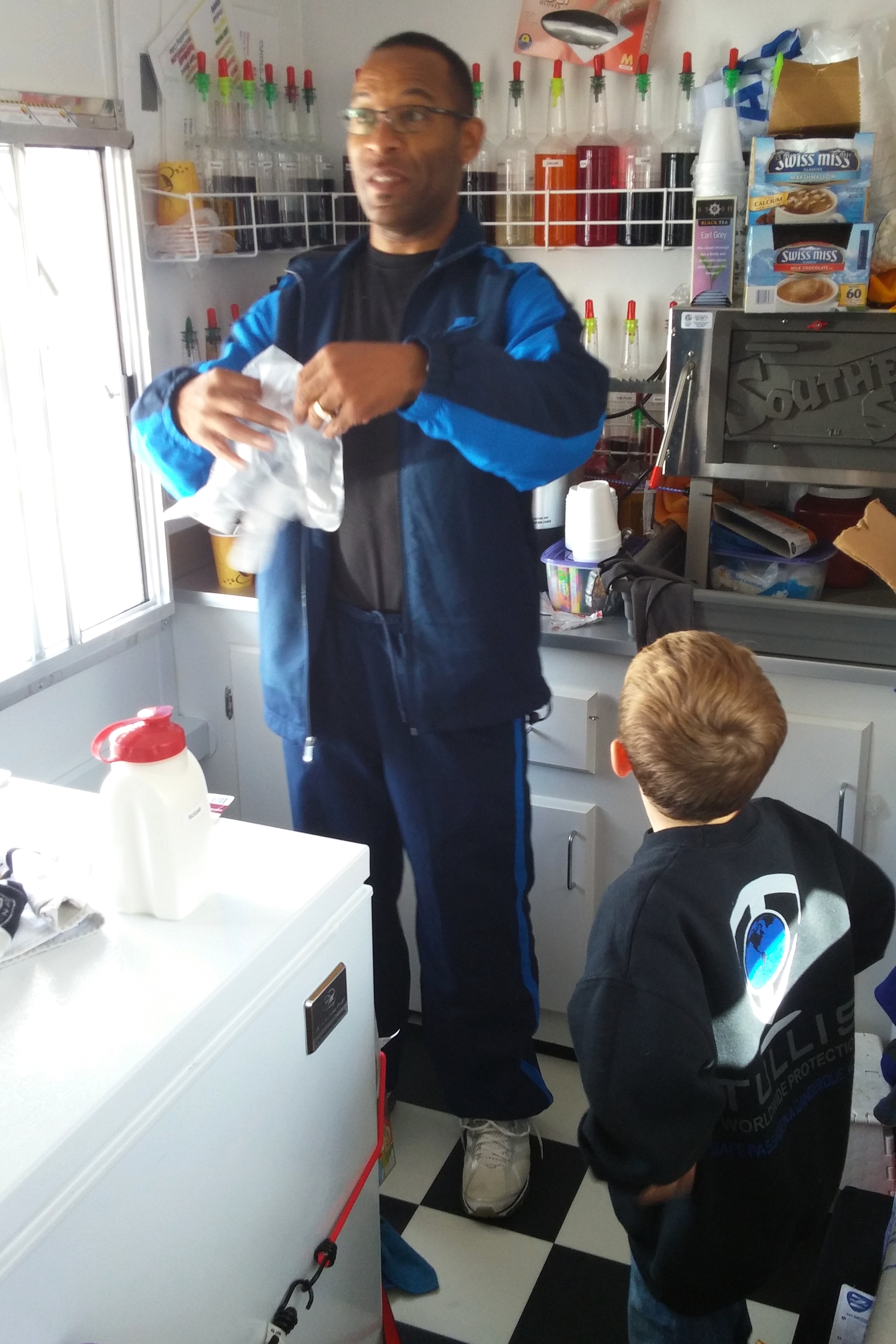 We also got to warm inside the concessions trailer which was owned and operated by Uncle J, a friend of Zachary’s dad.