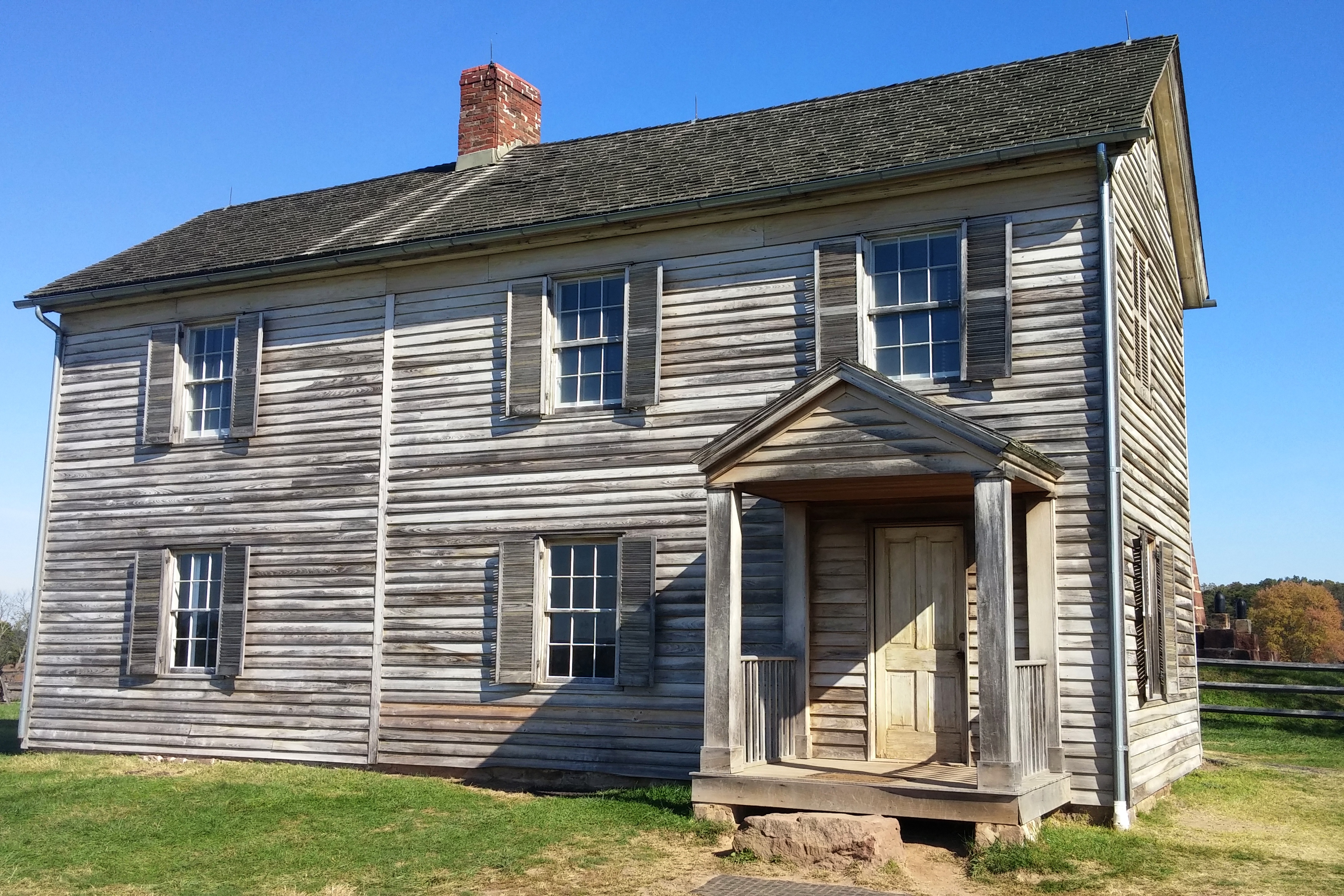 The battle was initially an artillery battle. Each side had about a dozen cannon, positioned only about 300 yards apart. The Union army held the higher ground for much of the day, but the Confederates had the advantage of being shielded by trees. At the right side of the Union line (left side of the Confederate line), the forces were less than 150 yards apart.Another distinction of First Manassas is that it had the first civilian casualty. An elderly bedridden woman was killed when the Union army shelled her farmhouse, thinking it housed rebel troops. The house (see right) is still standing.