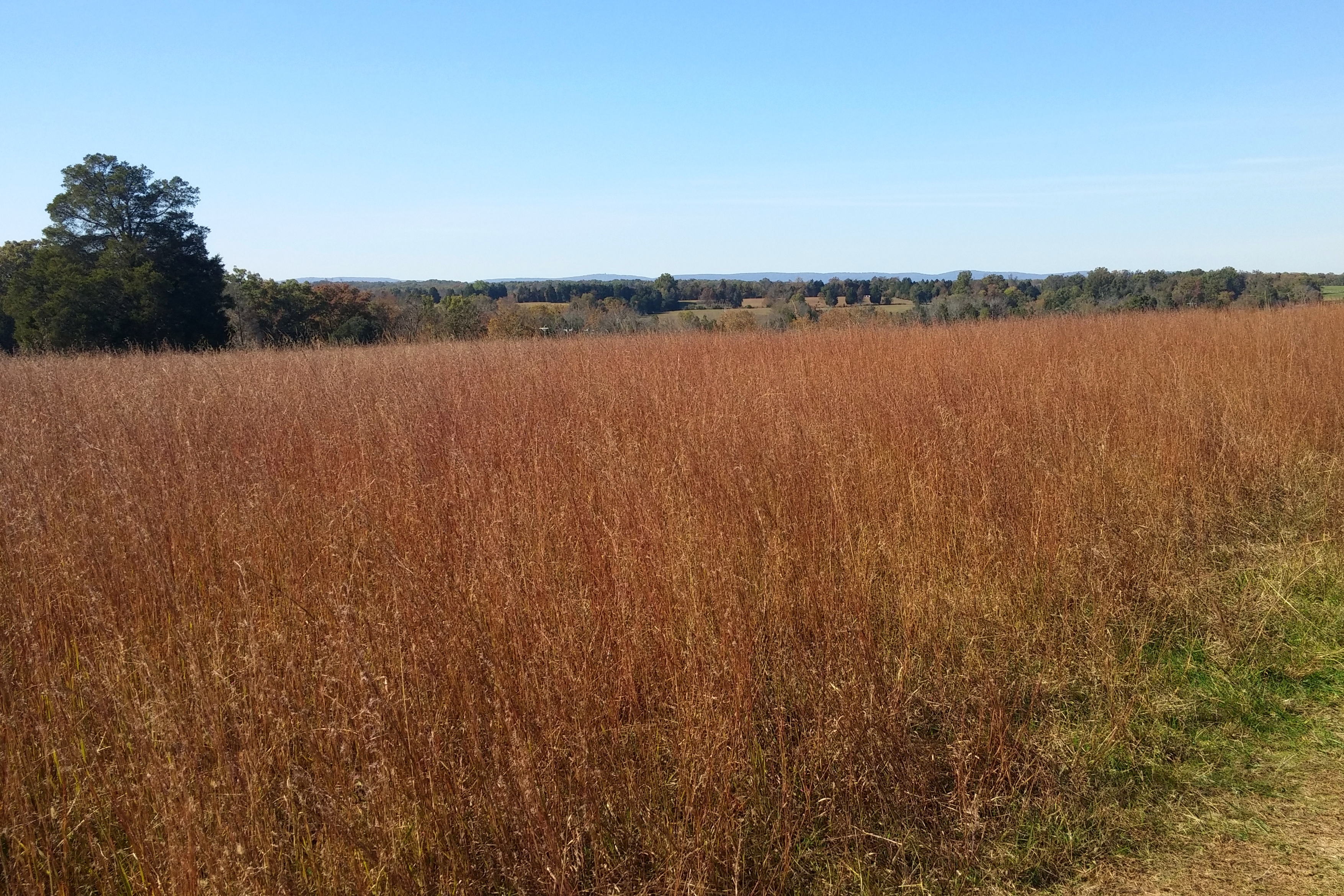 What the Confederates saw was the Union army approaching from the north – the view in the photo here. I assume the spectators were also to the north, probably arrayed along what is now US 29, which runs east/west in this photo. The road rises to the east and much of the battle could probably be seen from that vantage point.