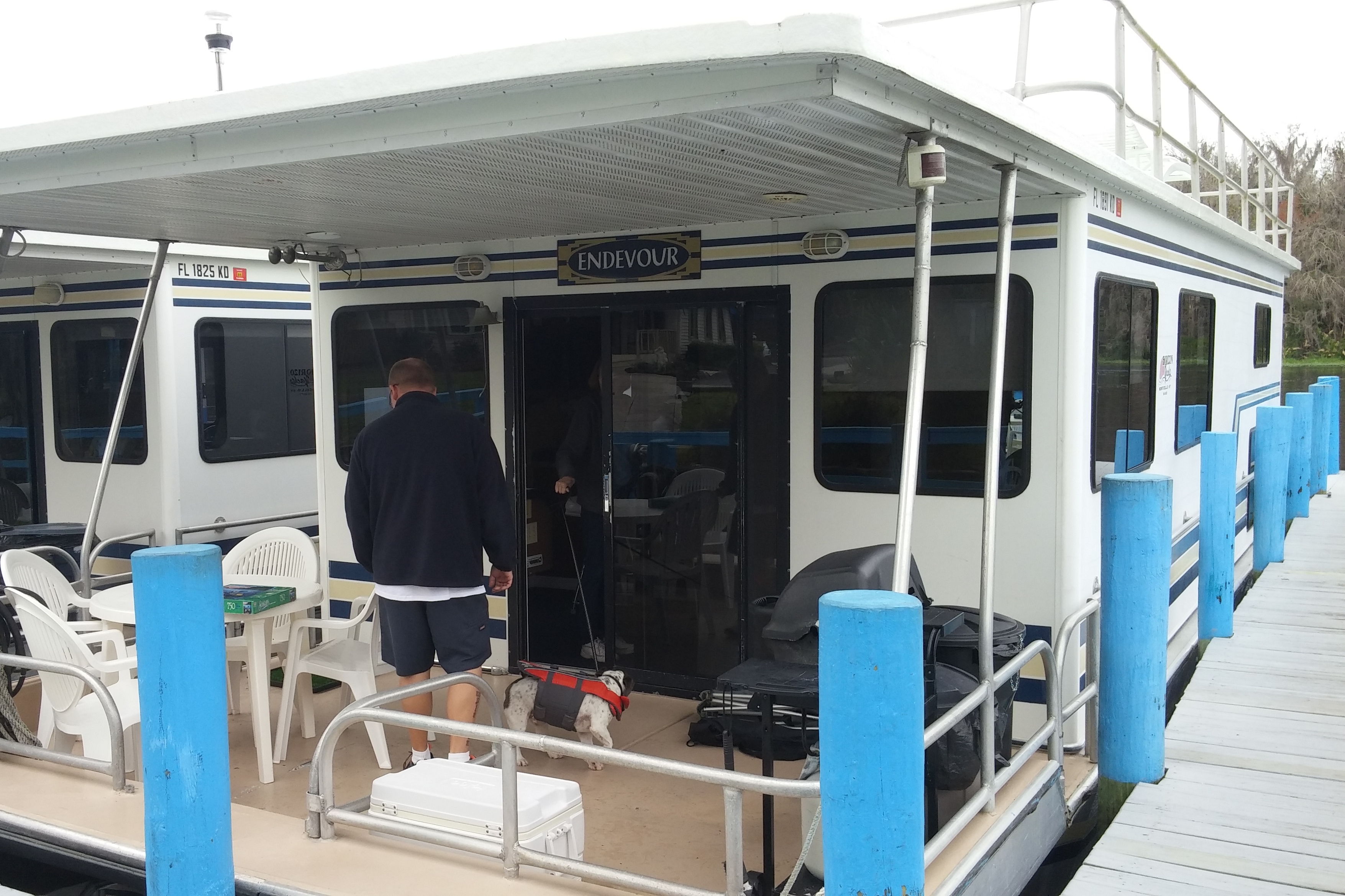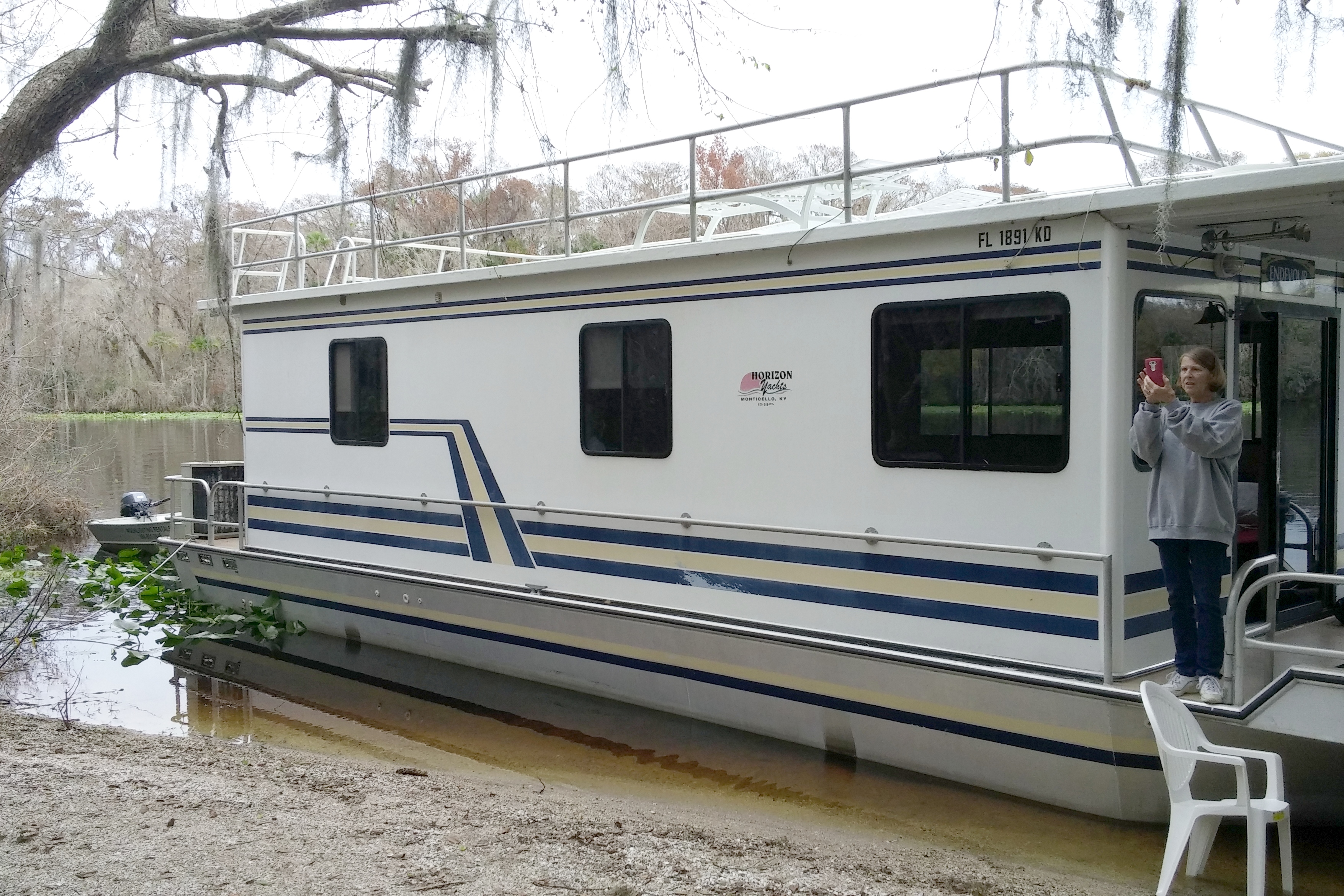 We have left our RV for a week to travel the St Johns River in a 54-foot houseboat. We are doing this because (1) we have talked about houseboating for a while and this was an opportunity to try it, (2) we had a timeshare week banked with RCI that was about to expire and we could exchange it for this houseboat week (though at a price), (3) it coincided with my birthday and (4) we are certifiably insane. So I, a lifelong landlubber with almost no boating experience, am now captain of a 54-foot vessel, the “Endevour”, towing a 14-foot “jon boat” with an outboard motor.