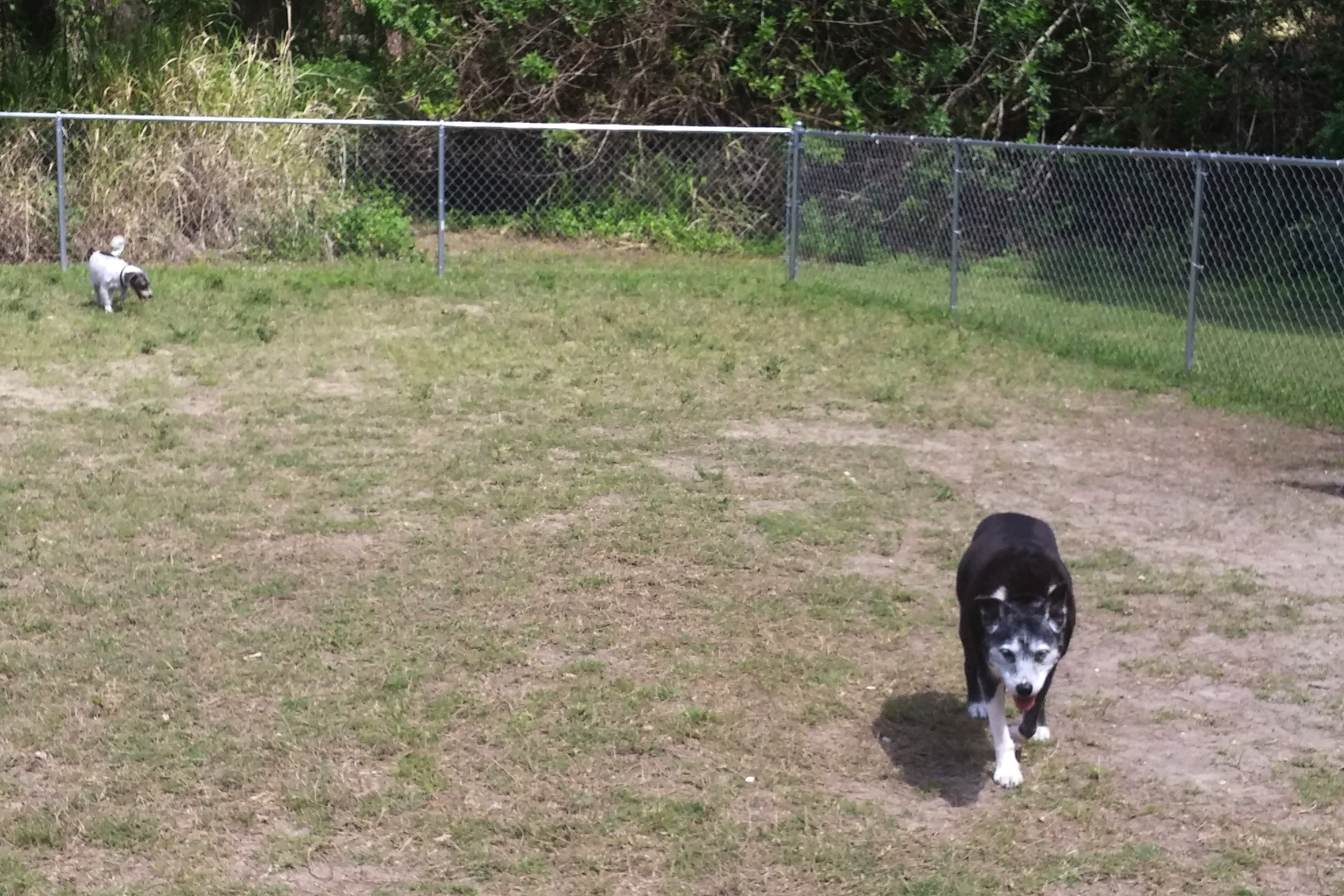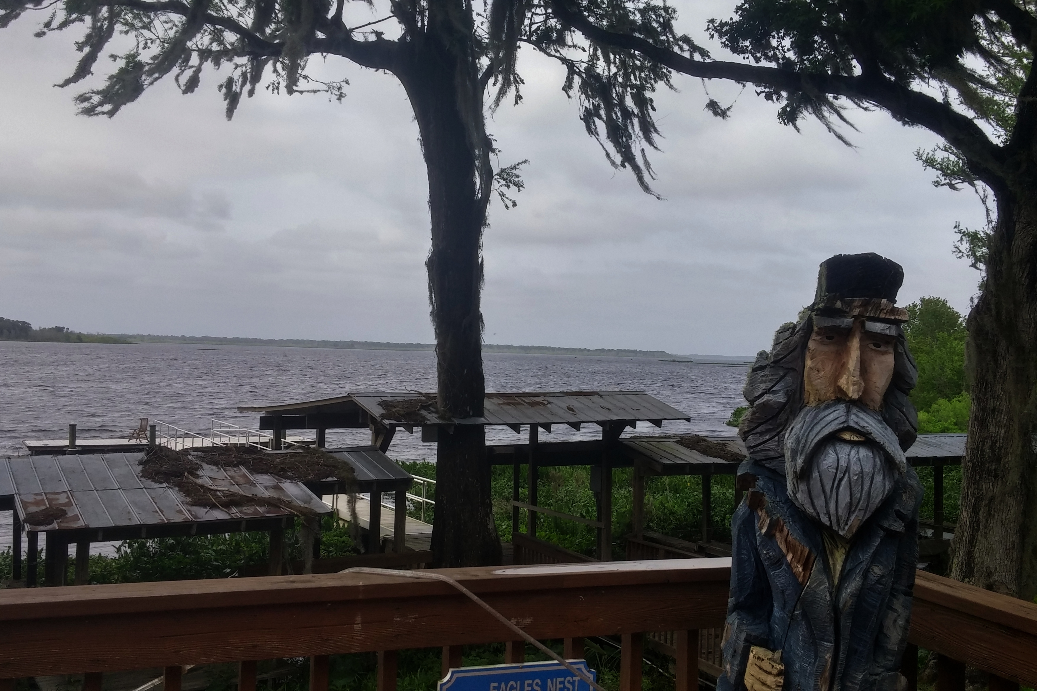 The weather was terrible – a downpour while setting up and brisk winds that prevented us from deploying the awning. We also had a tree in close proximity that brushed against the RV, which affected the quality of our sleep. But despite these negatives, I thought the place was very nice. Having a golf course on site was a plus, but there was also a very nice rec hall, a laundry with new machines, a very large dog park and a restaurant, right on the shores of Orange Lake with a lakeside patio (which would have been great had the weather been better), that served surprisingly good food. Their fried green tomatoes were tangy and crisp – just the way we like them. I had a shrimp basket that was very tasty and filling. I didn’t really need dessert but had to try the “peanut pie.” It was like a slice of peanut butter cheesecake. A bit disappointing in that it didn’t have chunks of peanuts, but good enough to finish.