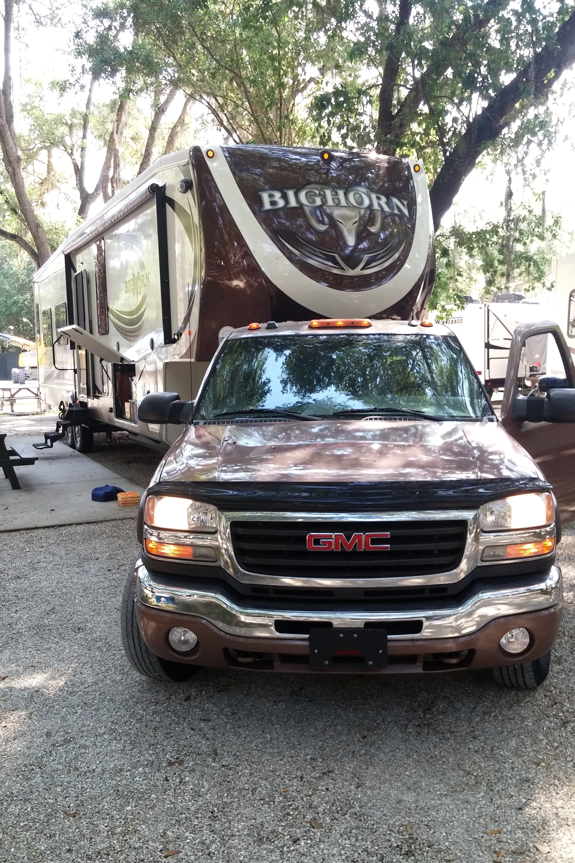 We stopped once. We didn’t really need a break after just 2 hours, but we had some difficulty in entering our destination into the GPS. I guess the “NW 45th Ave St” (sic) made as much sense to the GPS as it did to us. Entering the name of the campground (Grand Lake) made the GPS happy and got us underway again.