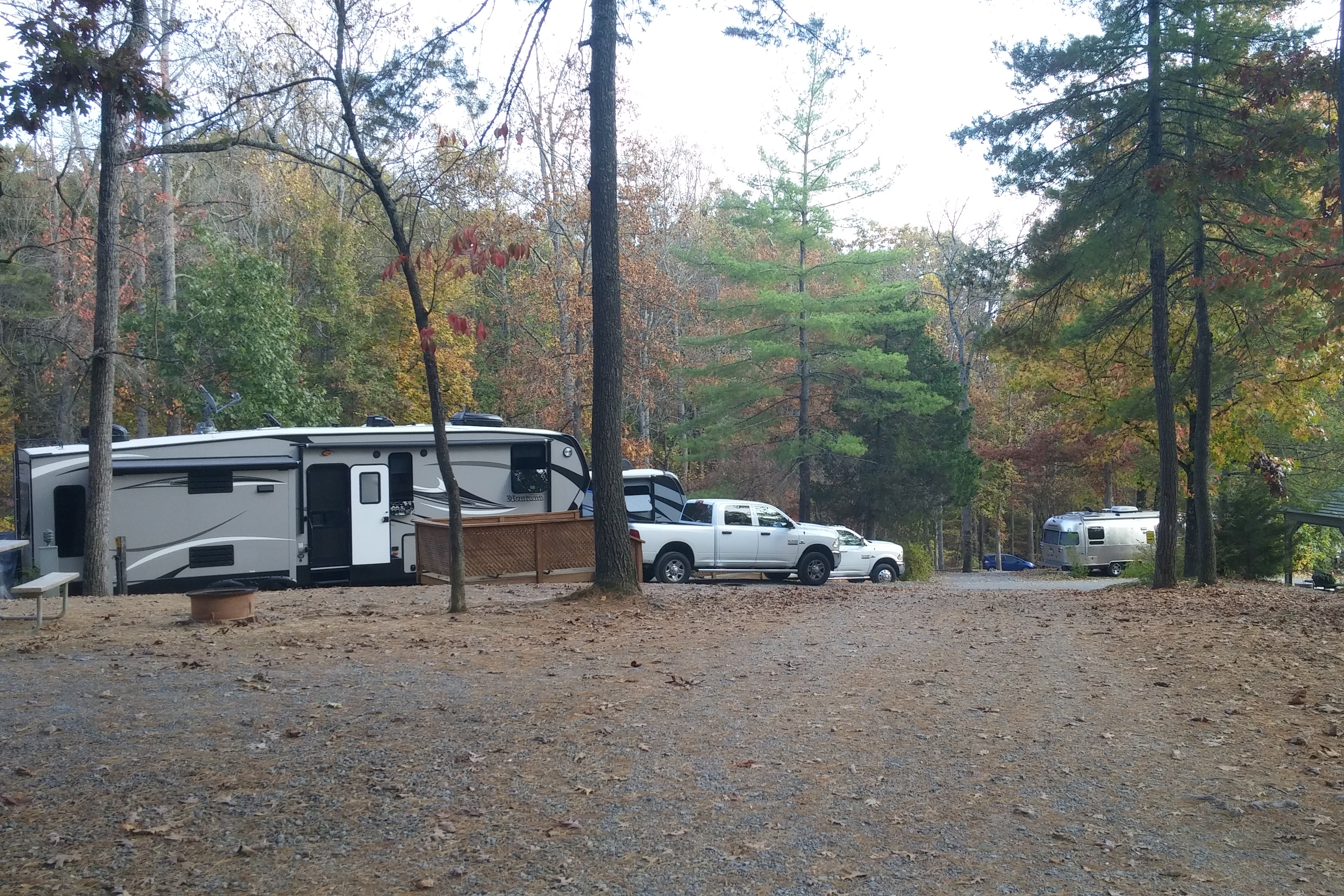 Our one-night stay in Natural Bridge was at the KOA there. Like most KOAs, it was an older park, in decent but not great shape, with fairly tight sites. This one also had some pretty dramatic hills and dips, which made getting into the site interesting. And, for the second time on the TTS, I had to use multiple wood blocks to level the rig.