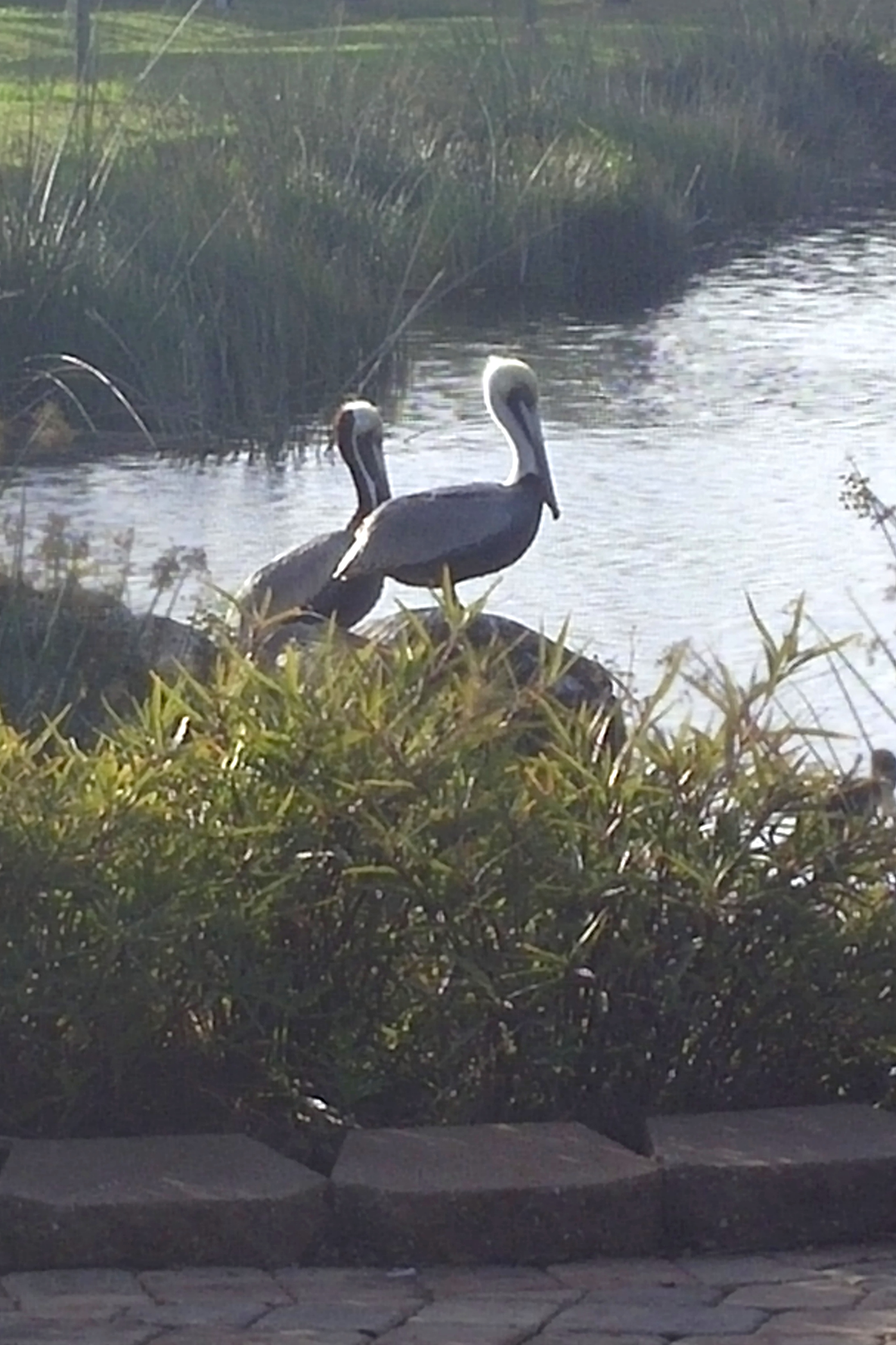 Our RV site at Gulf Waters RV Resort is right on a man-made pond. It is a beautiful site which we are enjoying very much. We knew that the view – of the pond, the clubhouse and the fountain – would be a constant source of pleasure and serenity. But we didn’t expect to have a front-row seat to some pretty exotic bird-watching.