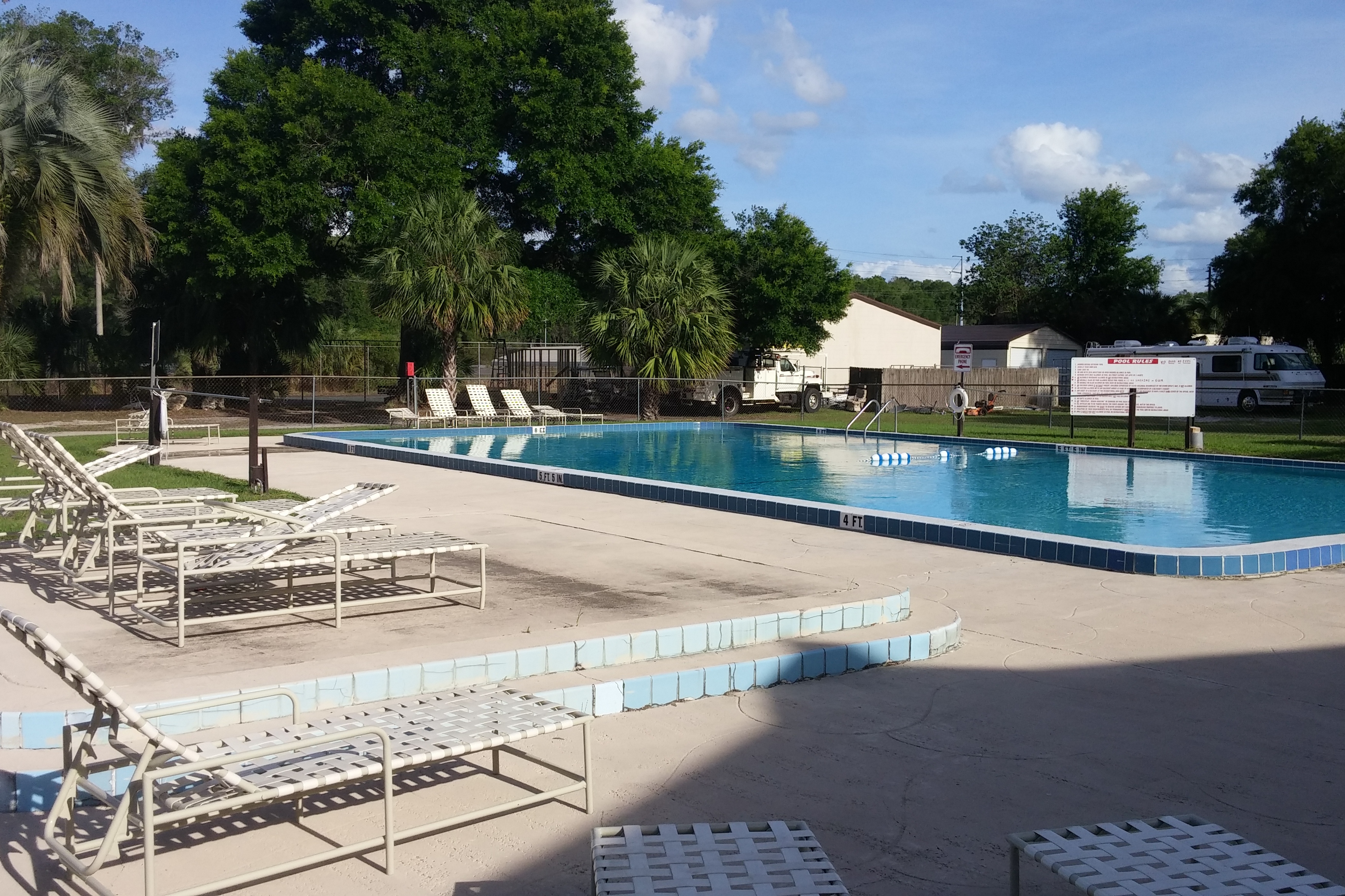 The park does have the large dog park, a new playground and a nice pool, so it is not without amenities. But it has no cable TV (we have a choice of 4 over-the-air channels) and is close enough to I-75 that we not only can hear the trucks go by, we can feel them go by.
