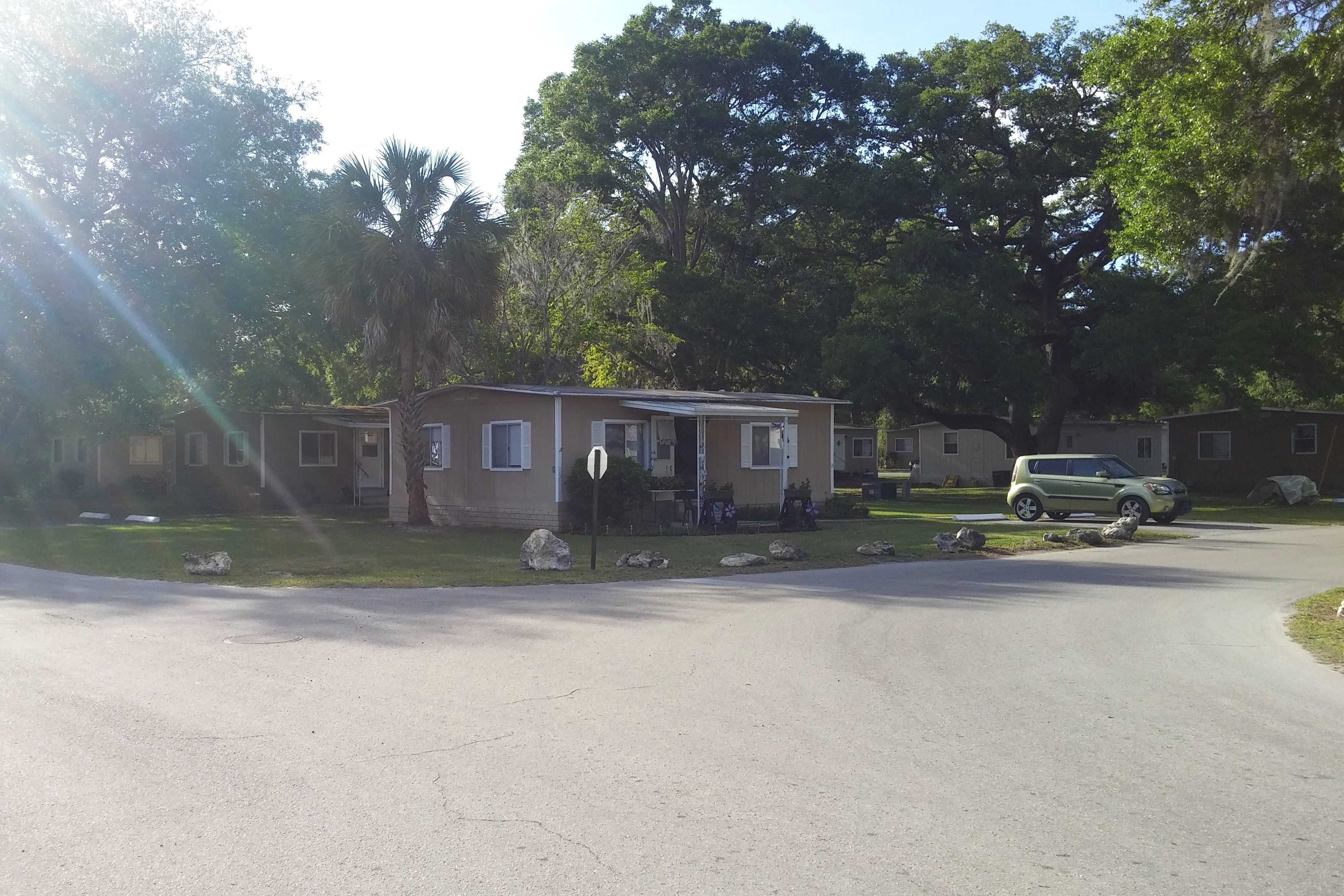 Our home for two nights is the Oak Tree Village & Campground in Ocala. If our goal had been to find a place that was the polar opposite of Gulf Waters, we would have to declare success. While the site itself is fairly large and comfortable – and a pull-through, making for easy setup – the park reminds me of a housing project. We locked our door for the first time in 6 months when we went out to dinner. Not only are the “apartments” – cheap double-wide trailers – very low class and unappealing, but the RV section of the park is filled with ancient trailers that have not moved in years. A man I met in the dog park admitted that he had lived in the RV park for 12 years and expected to die there.