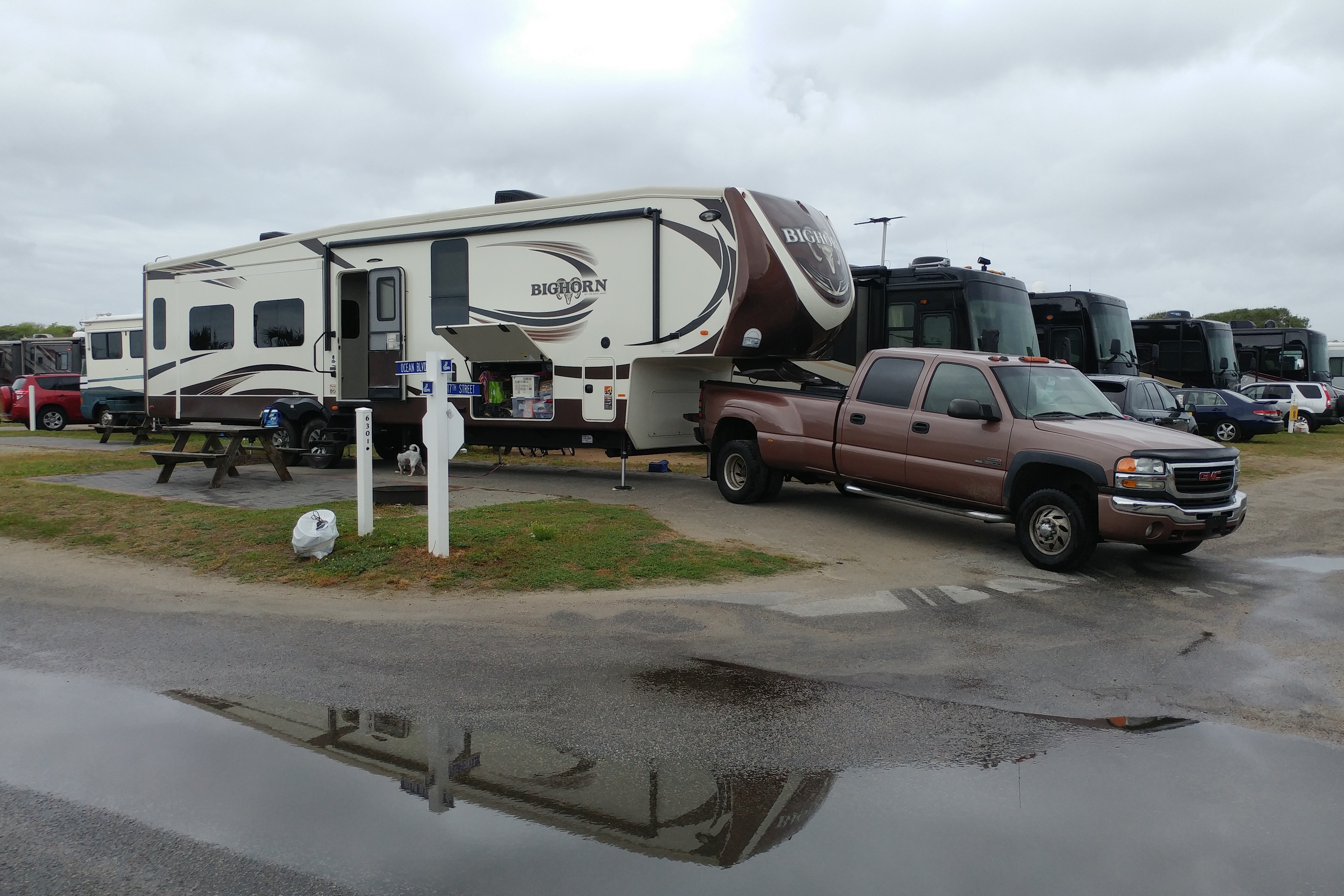 Third, the site given to us at our destination, The RV Resort at Carolina Crossroads, was under about 2 inches of water. We had to call the office and request another site.