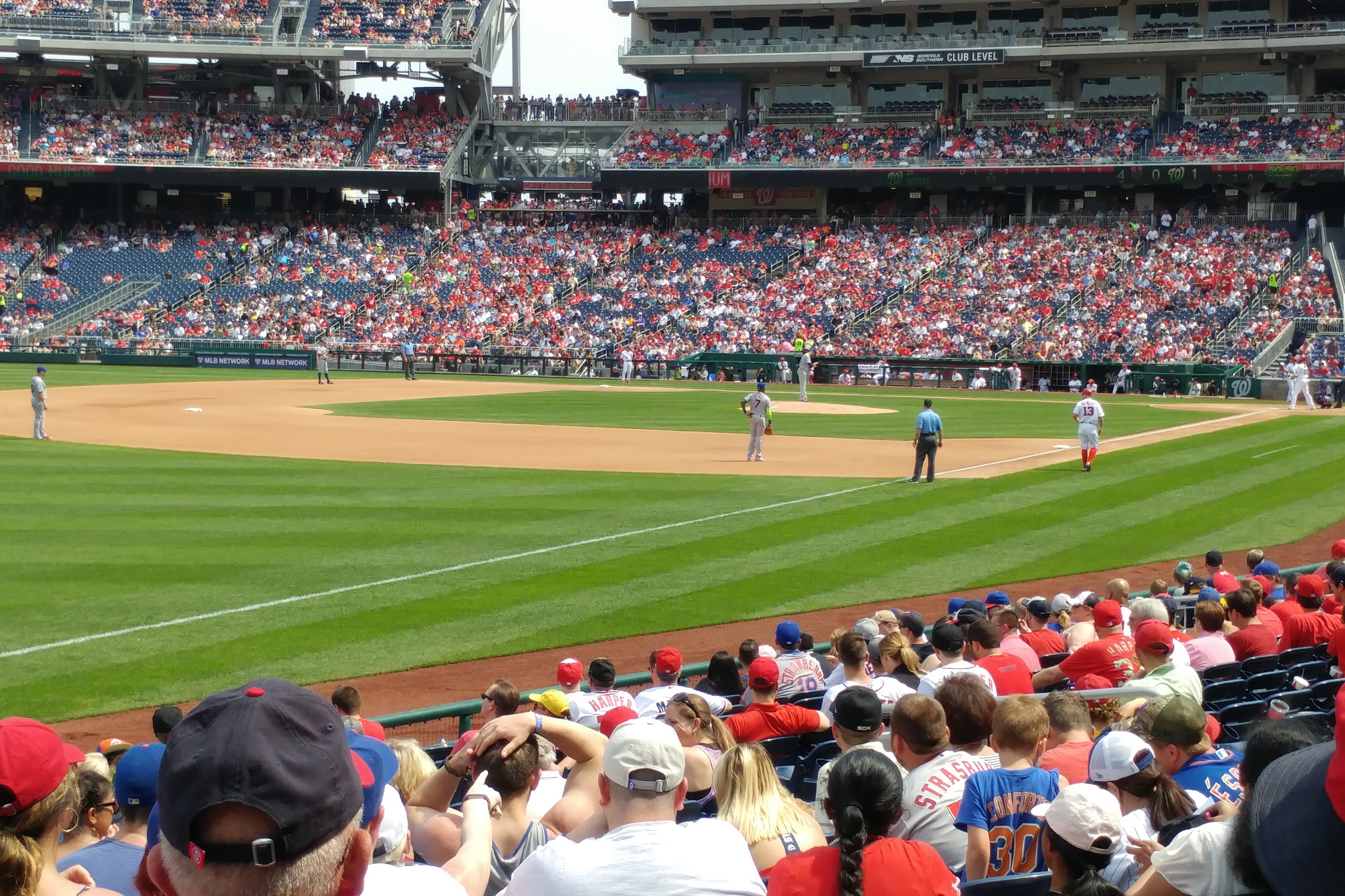 If it matters, New York beat Washington 5-4. It was a well-played game, with good pitching and just one error. Four home runs (two by Michael Conforto, who I really need to get on one of my fantasy league teams). But the big attraction for me was Nationals Park, one of the newer parks in the majors. While not as cozy as Fenway or as cute as Camden Yards, I found it to be a good stadium which offered obstruction-free views for nearly all the 46,000 seats (including the 10,000 that were empty).