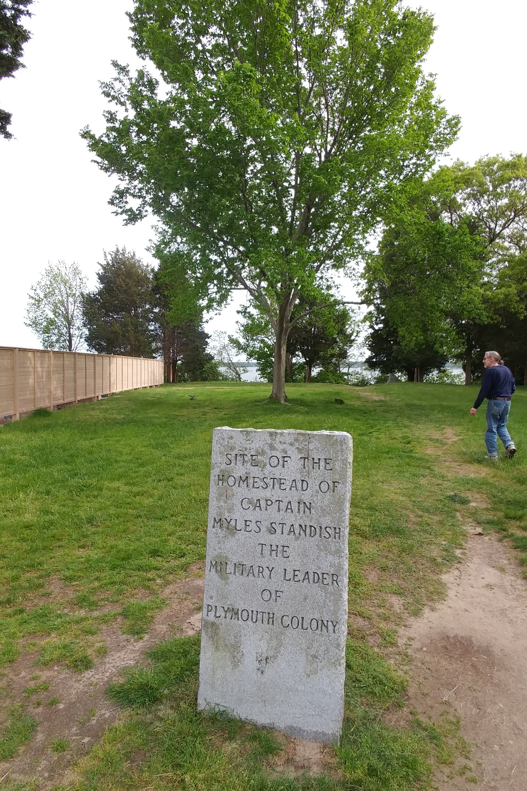 I also visited the site of the Aldens’ home in Duxbury. It lies on the property of Duxbury High School and abuts the soccer field. It is also surrounded by a disc golf course (which I did not play). I doubt if John and Priscilla ever imagined that their homestead would someday be surrounded by athletic teens and leisure activities. I doubt that they even understood the concept of “leisure time.”
