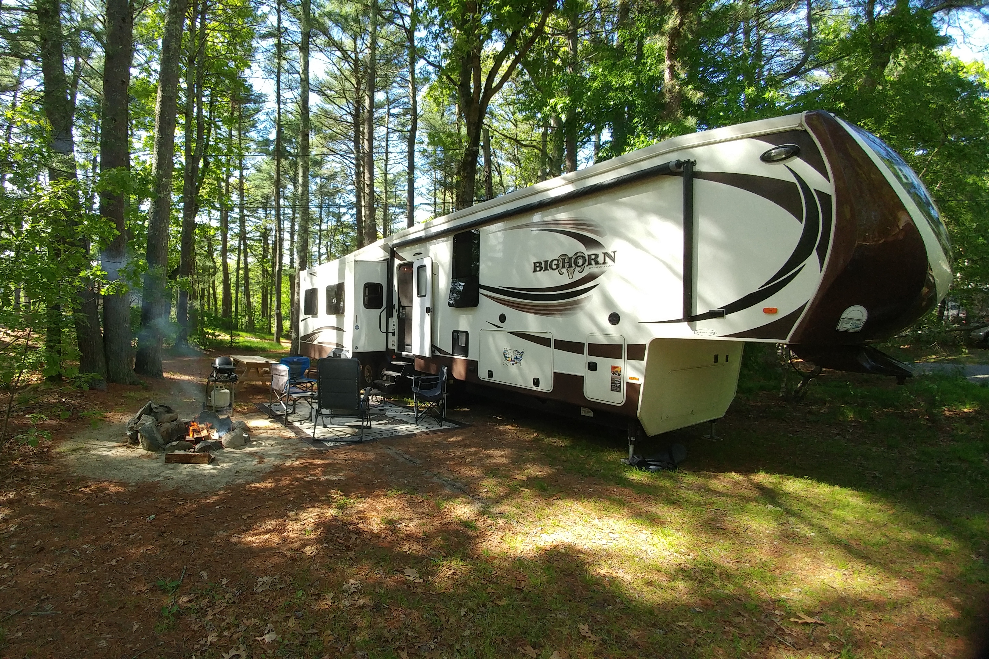 Our home campground in Plymouth was the Pinewood Lodge Campground. Our memories of this campground will be forever tainted by the horrible weather that we had there – measurable rain on probably 18 of the 24 days. And cold. Very cold. Some days were more than 20 degrees below normal. We used a lot of propane keeping warm. Huddling in the RV while a hard cold rain drenched us was not how we envisioned spending May in Massachusetts.