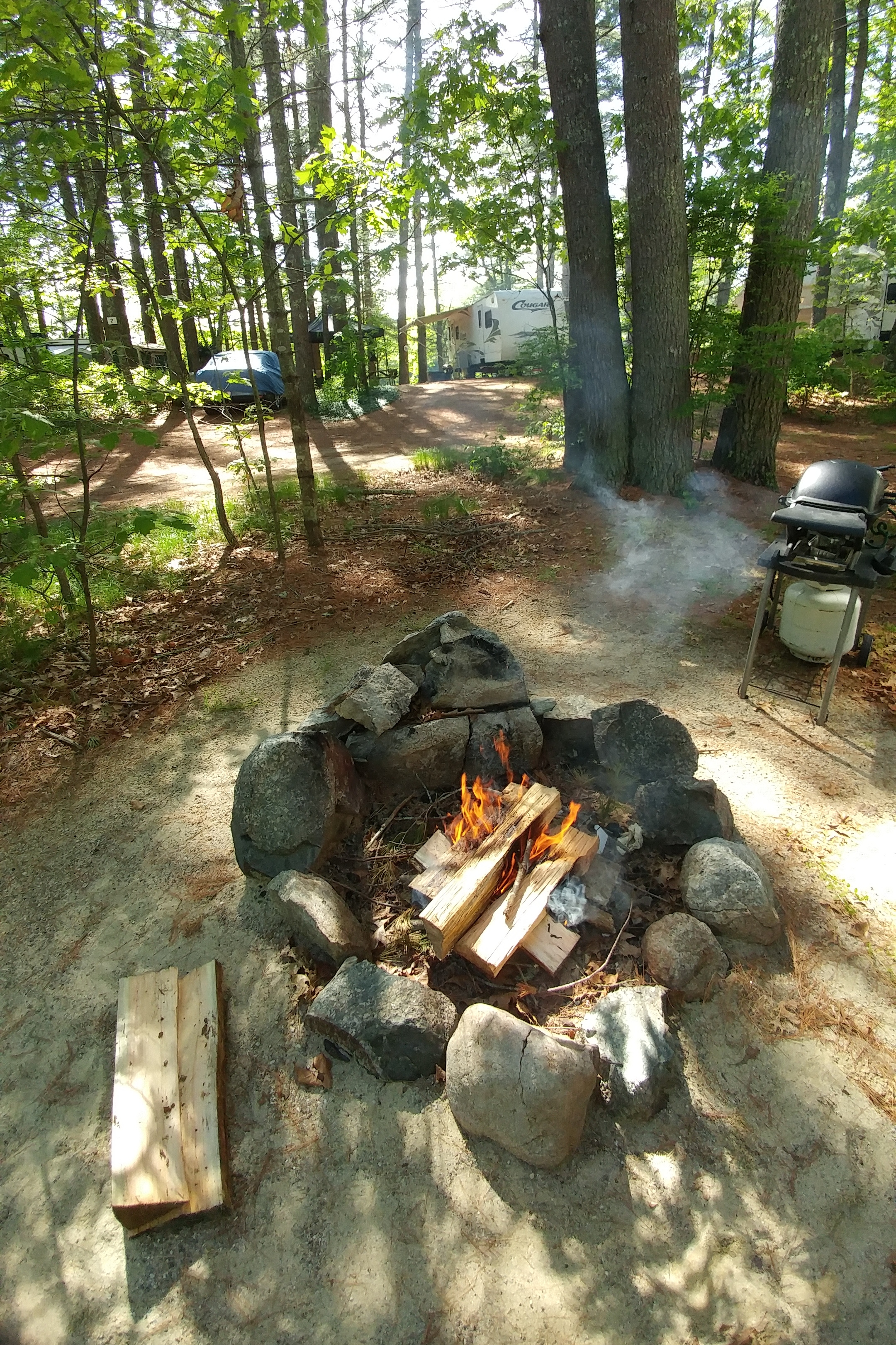 - The site (#66). It was large, level and wooded, with a nice campfire ring (that we actually used!). Very quiet. Nice neighbors.