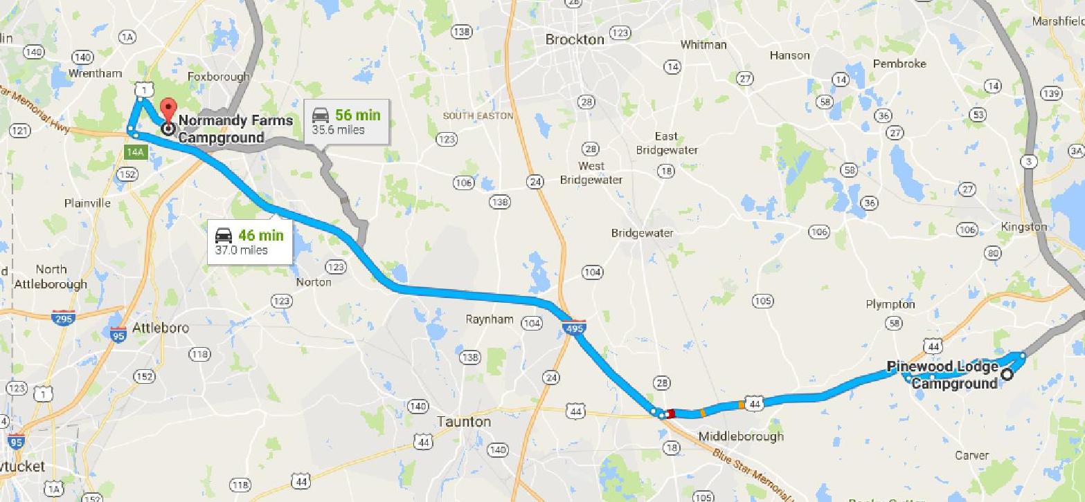 38 miles via (mostly) US 44, I-495 (around Boston) and US 1. Cumulative tow miles: 38. Cumulative truck miles: 874.