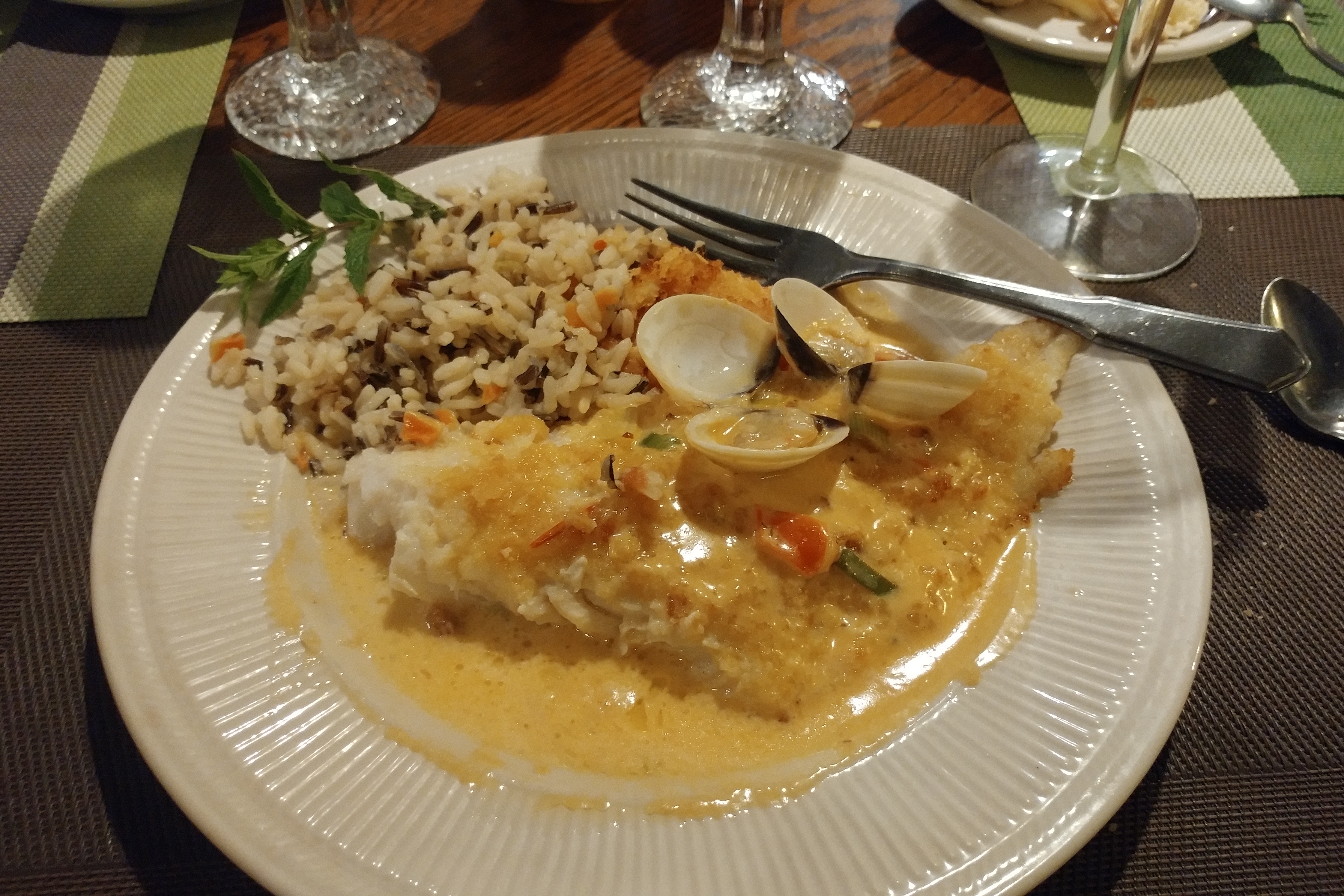 The real surprise, though, was dinner at the Castle. I wasn’t expecting much. The building is old and looks the way a castle would look if was built as a ranch. Tacky on the outside while the inside is disorganized and screams “we stopped caring years ago.” But they haven’t stopped caring about the food. I ordered a haddock special as part of a 3-course dinner for $23. The fish was flaky, fresh and delicately seasoned and was accompanied by a very nice wild rice. Jett had a filet of beef which she said was “perfect.” I ordered chowder for an appetizer and a strawberry rhubarb pie for dessert. The chowder was very good. The pie was also very good, but unbalanced – too much strawberry and not enough rhubarb. But, overall, it was one of the finest meals we have had all year. And the service was superb.