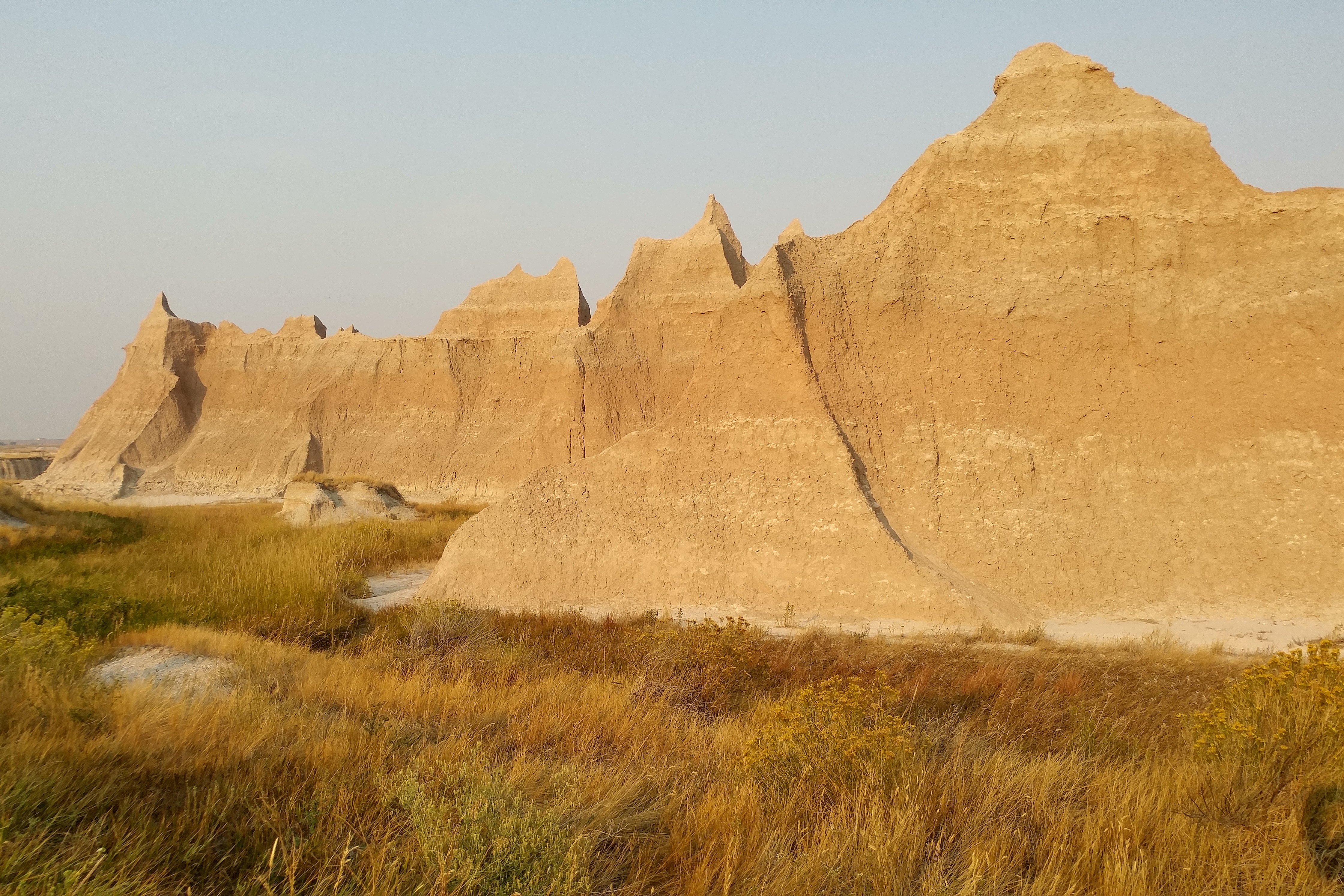 We drove most of SD 240 on Saturday – about 25 miles of very scenic roadway through the Badlands National Park. We ended up in Wall, home of Wall Drug, which I have already described. This is to record some of the beautiful photos that I took in the Badlands.