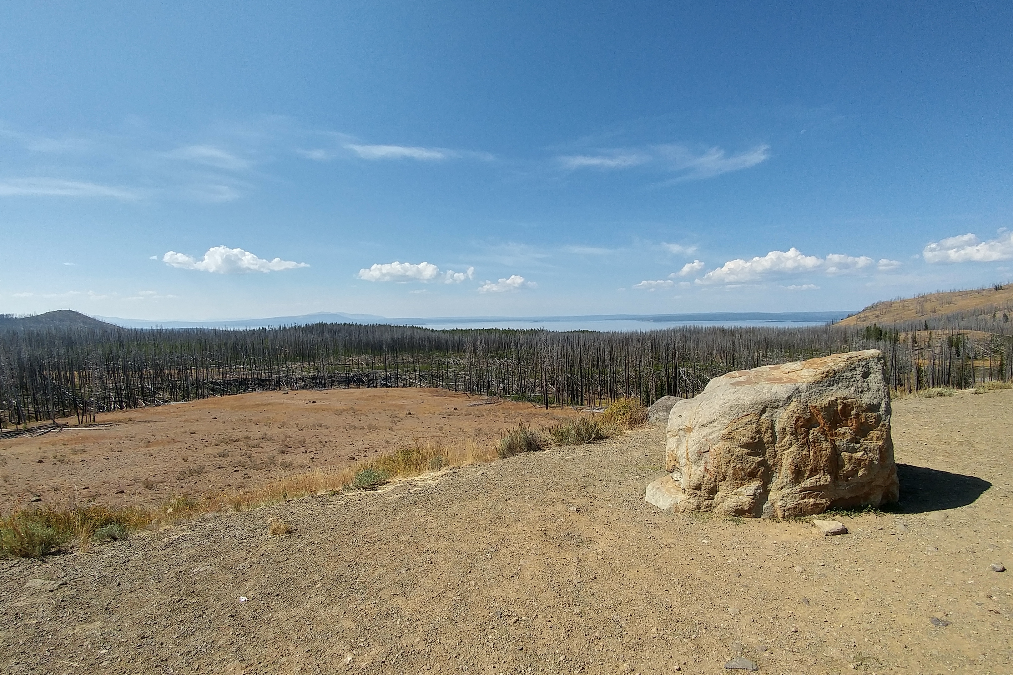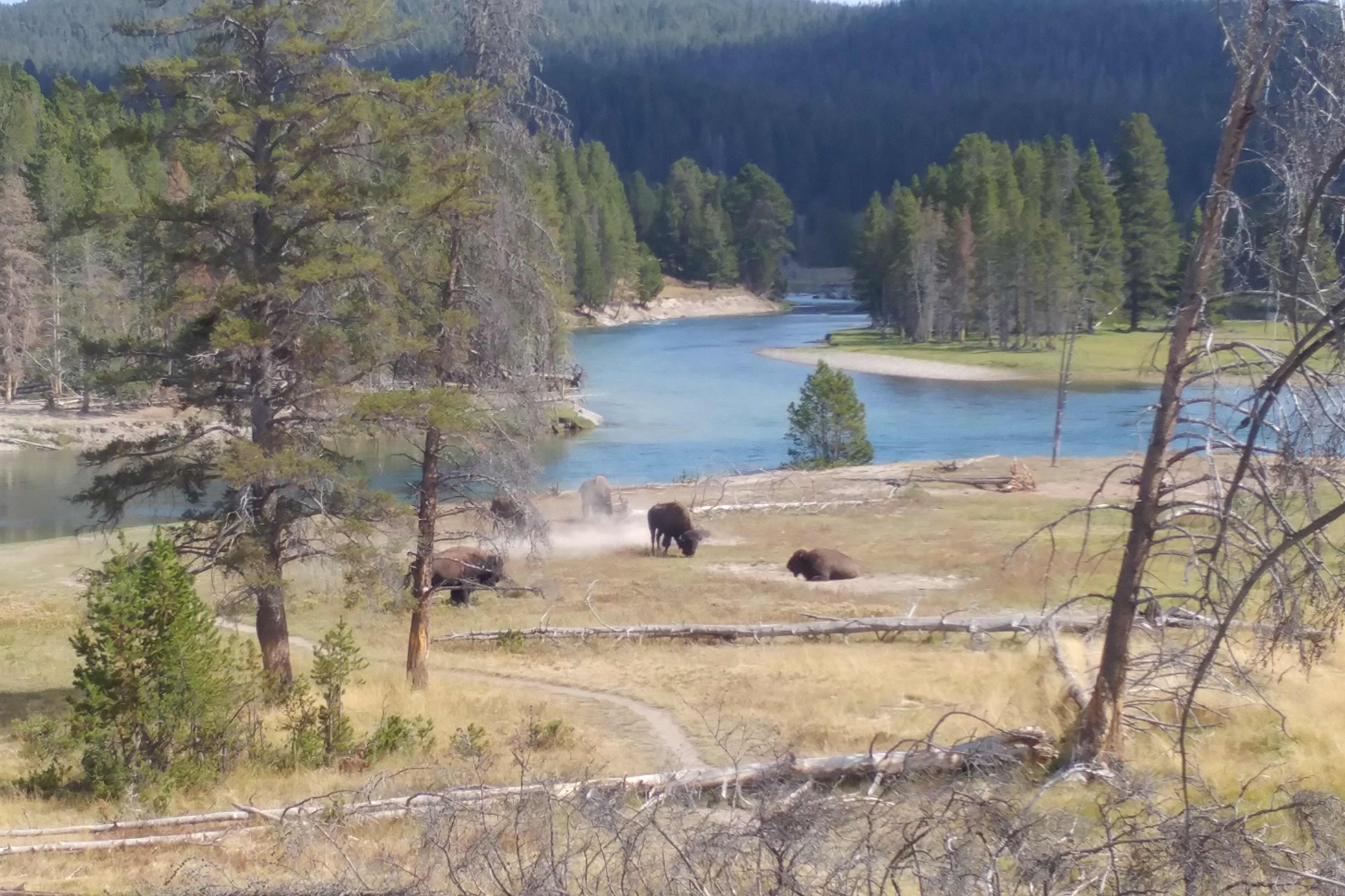 I also took the day yesterday – a warm, sunny day – to drive into Yellowstone to take some photos. Because it was just the truck – and just me (Jett stayed home) – I was able to get to some places that would have been impossible otherwise. Most notably I drove to the top of the Lake Butte Overlook to take some elevated photos of Yellowstone Lake and I walked the 1 km trail at the Mud Volcano. I also got some unexpected up-close-and-personal shots of buffalo.