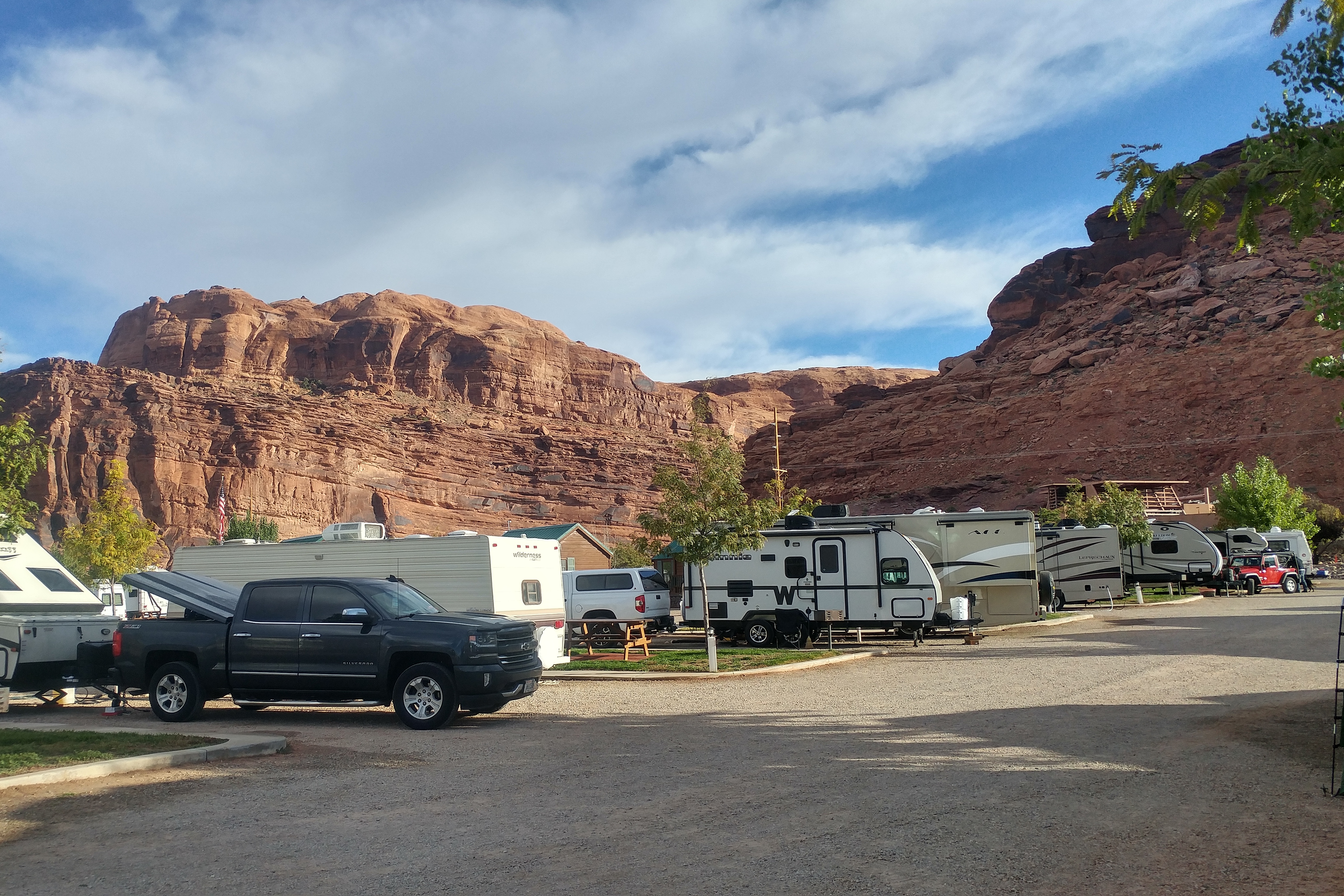 We stayed 3 nights at the Moab Valley RV Resort. We booked late due to the truck problems and they could accommodate us for only 2 nights. They found a place for us for the third night, but we had to move. I think that is a first in our travels. I suppose you could even call it a “hop” – of about a tenth of a mile.