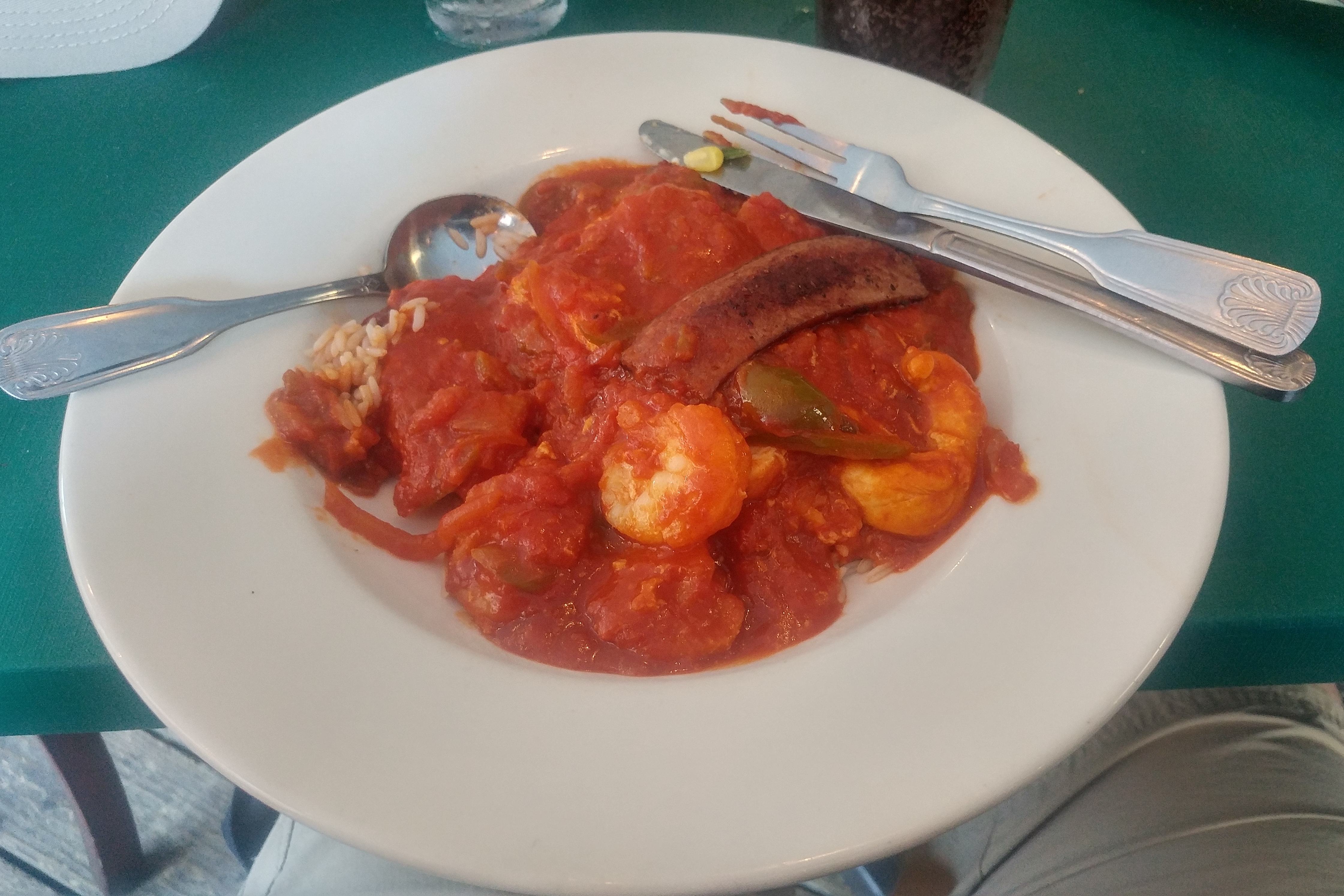 Our main goal was the fried green tomatoes at Tommy Condon’s and we got those as an appetizer. They never disappoint. I followed that with a jambalaya that just about burned my lips off – very, very spicy. Probably too spicy, but I had a pint of Kilkenny Ale to soothe my palate. I finished it and, contrary to Jett’s prediction, did not have to swallow any Tums before bed.