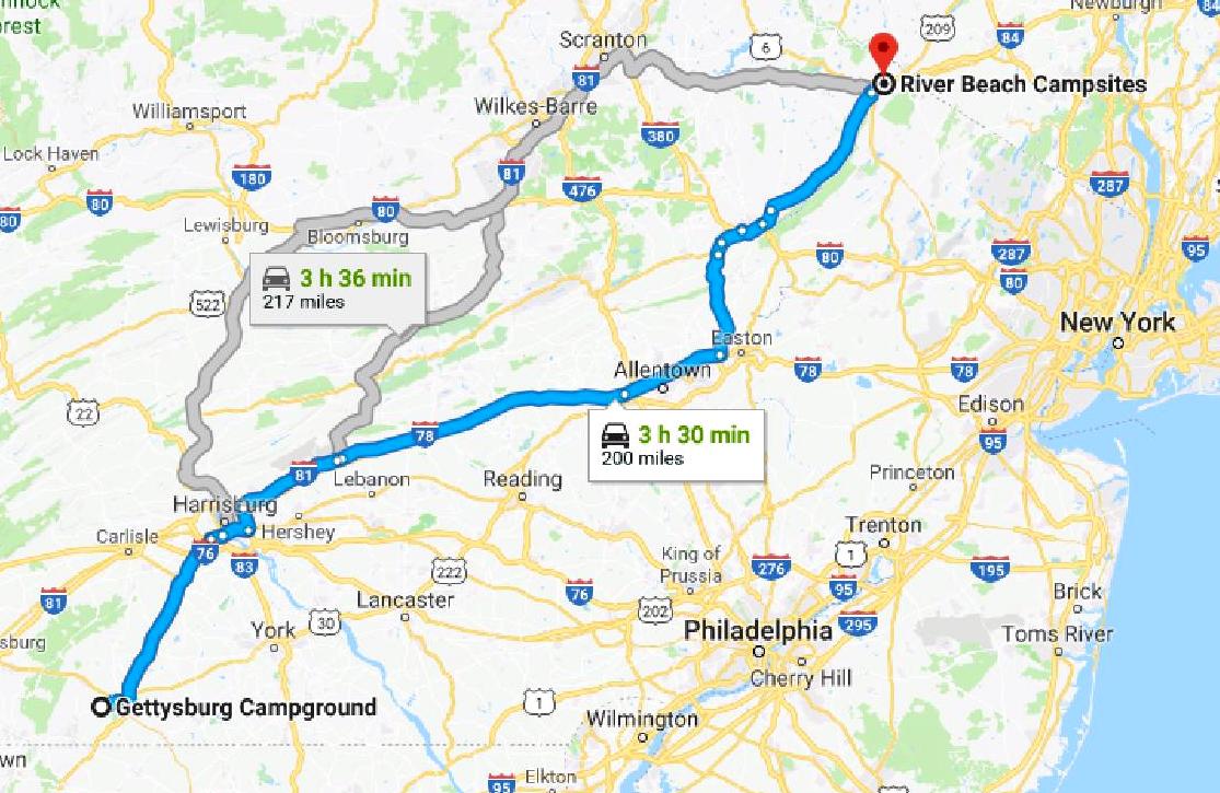 The route was complicated (as Jett noted about a dozen times as she tried, without success, to reconcile the printed map with the GPS directions) but we managed to navigate it without getting lost. Most of the route was highway that we have traveled before. As always, the Pennsylvania roads were narrow, crowded and in poor repair. Not my favorite state for travel.