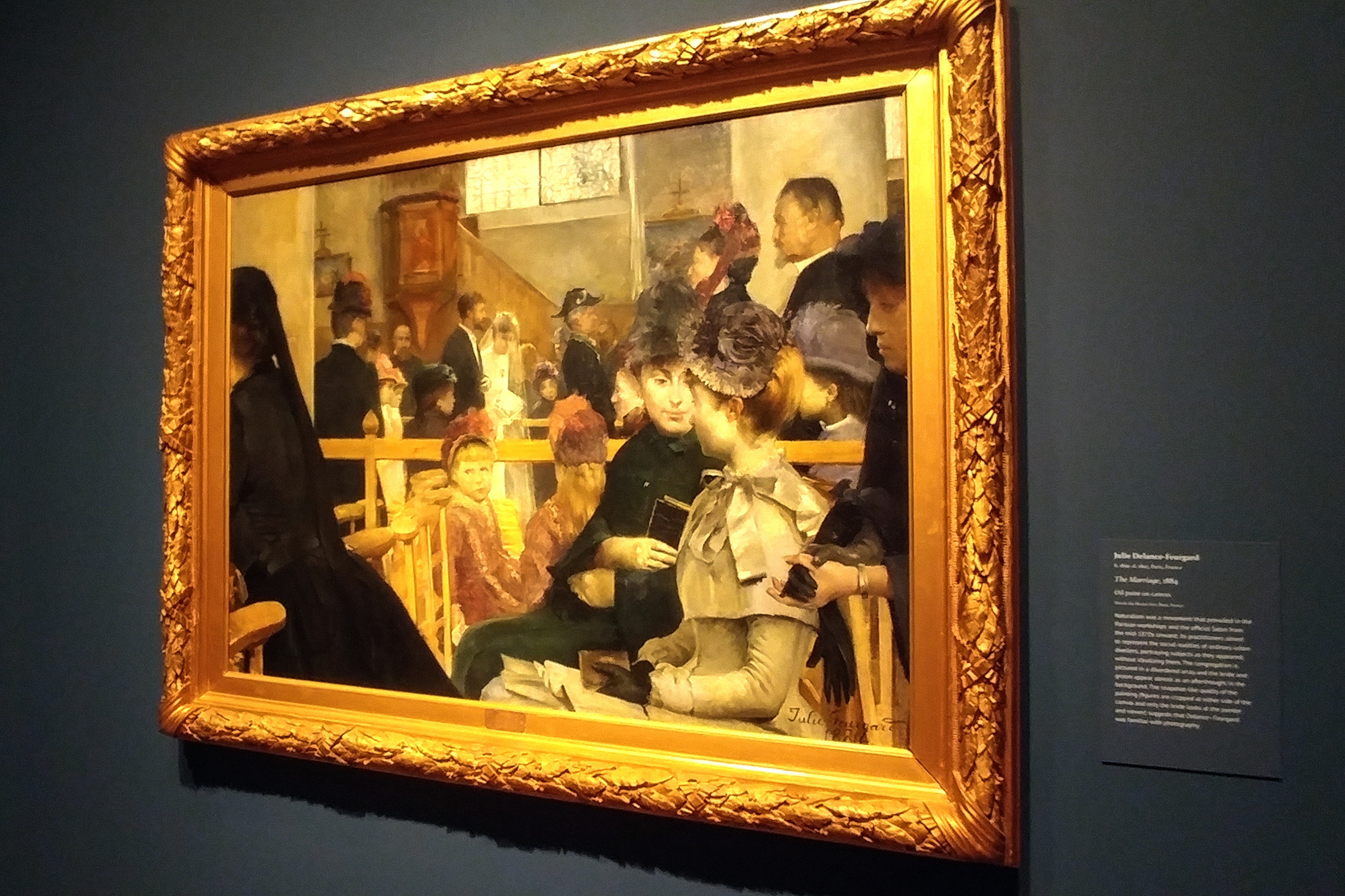 Other highlights? Some paintings and one sculpture by Remington. Some very nice Monets and Pissarros. A “Thinker” sculpture by Rodin. And a very intriguing painting of a wedding by an unfamiliar artist. I can’t make out the name from the photo.The Clark