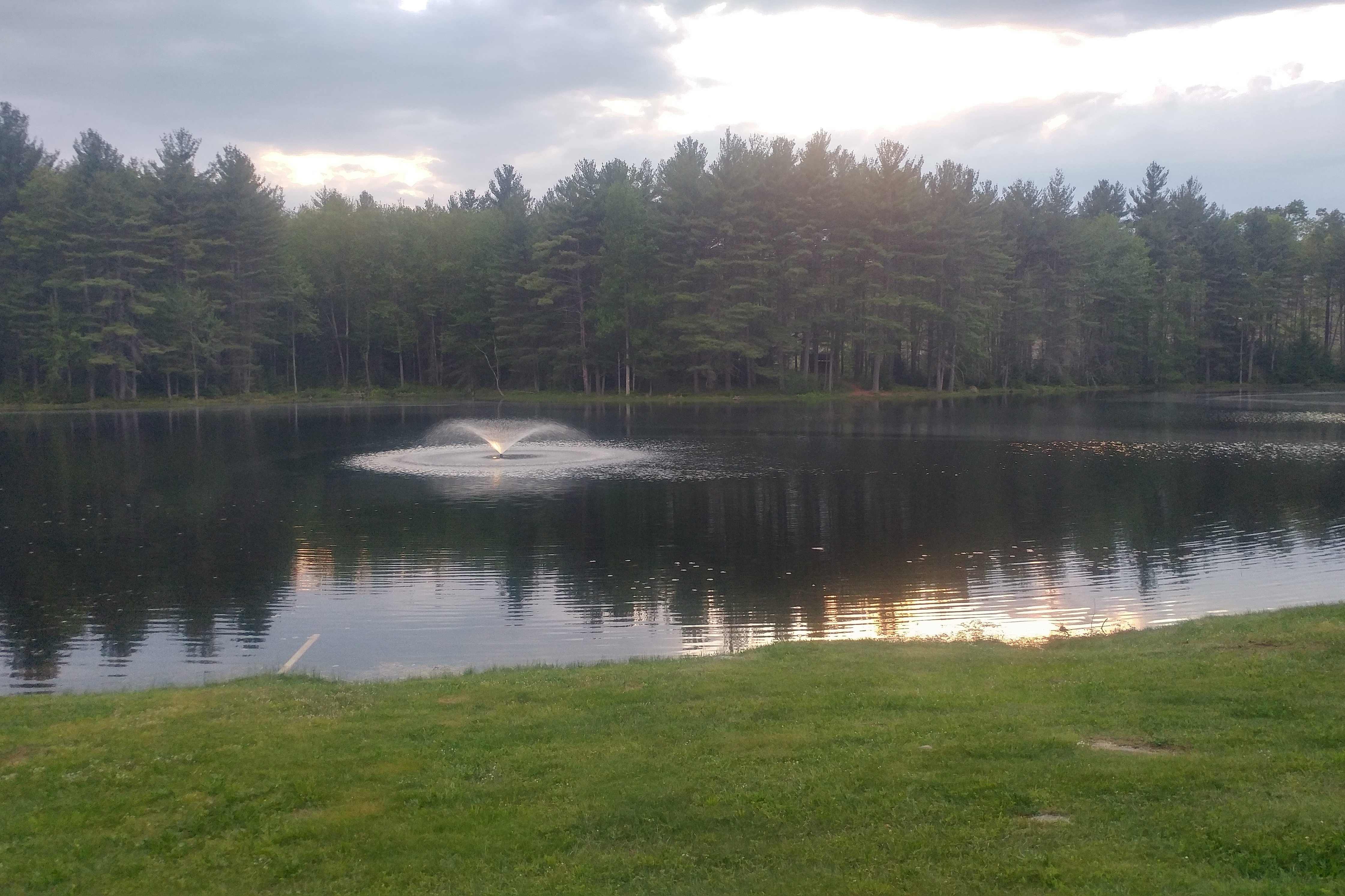 We have a site very close to the pond. If you stand outside and peer carefully between the RVs across the way, you can see a bit of it. We are a short walk from the firepit where communal campfires burn each weekend night. On the 4th of July weekend a live band set up near the firepit and there was dancing in the street. We didn’t join in and neither did many others – there were about 20 people there at 10pm.