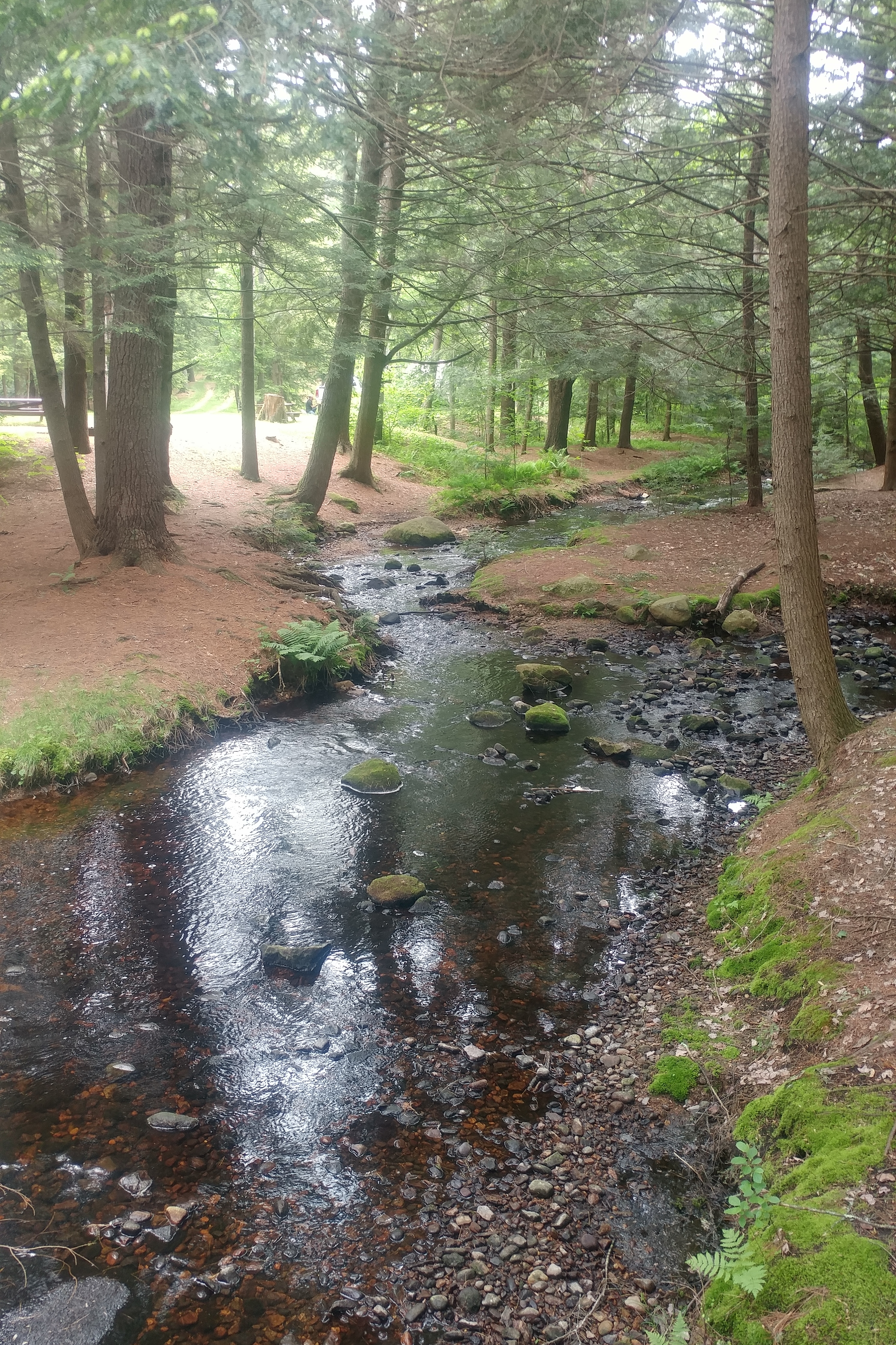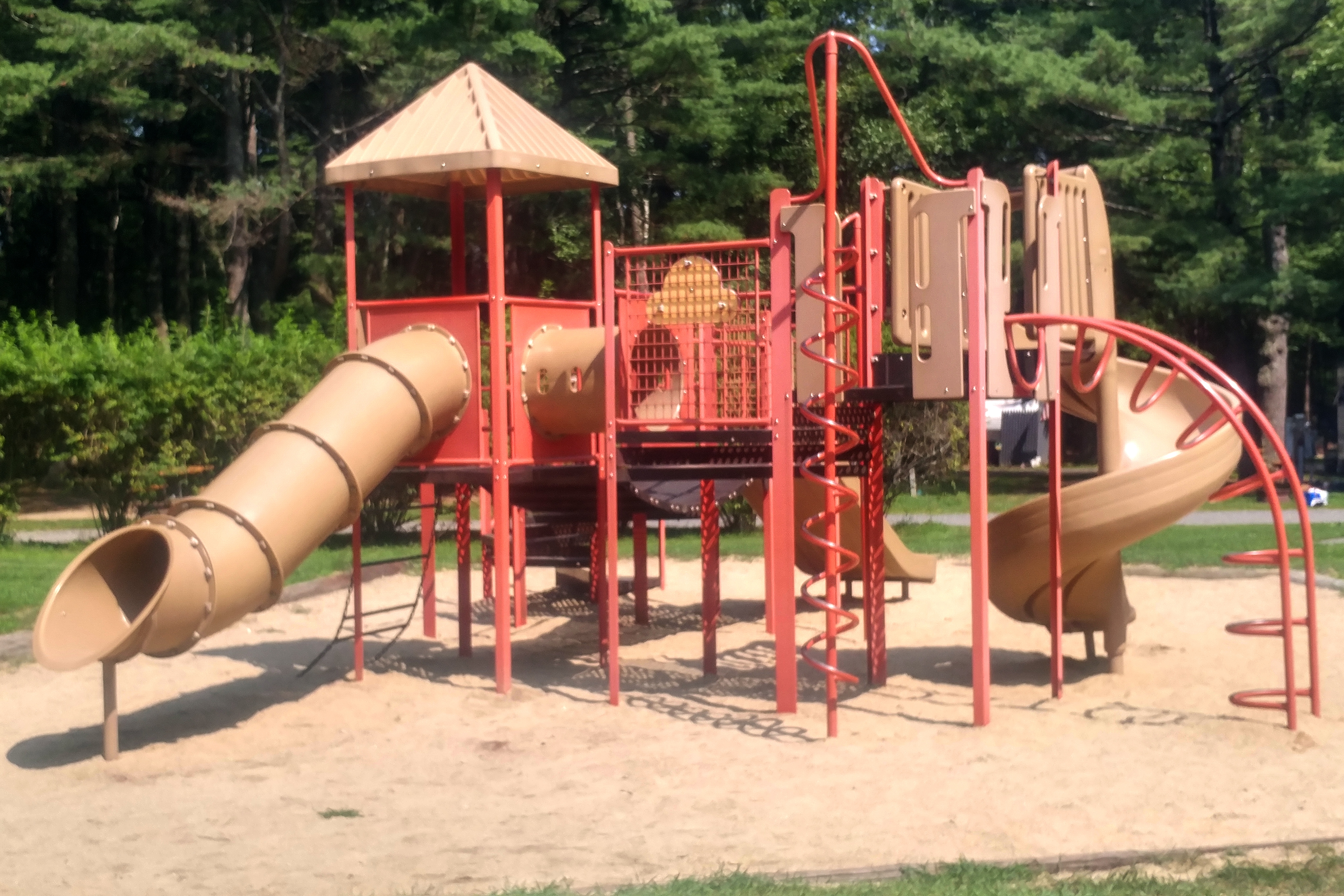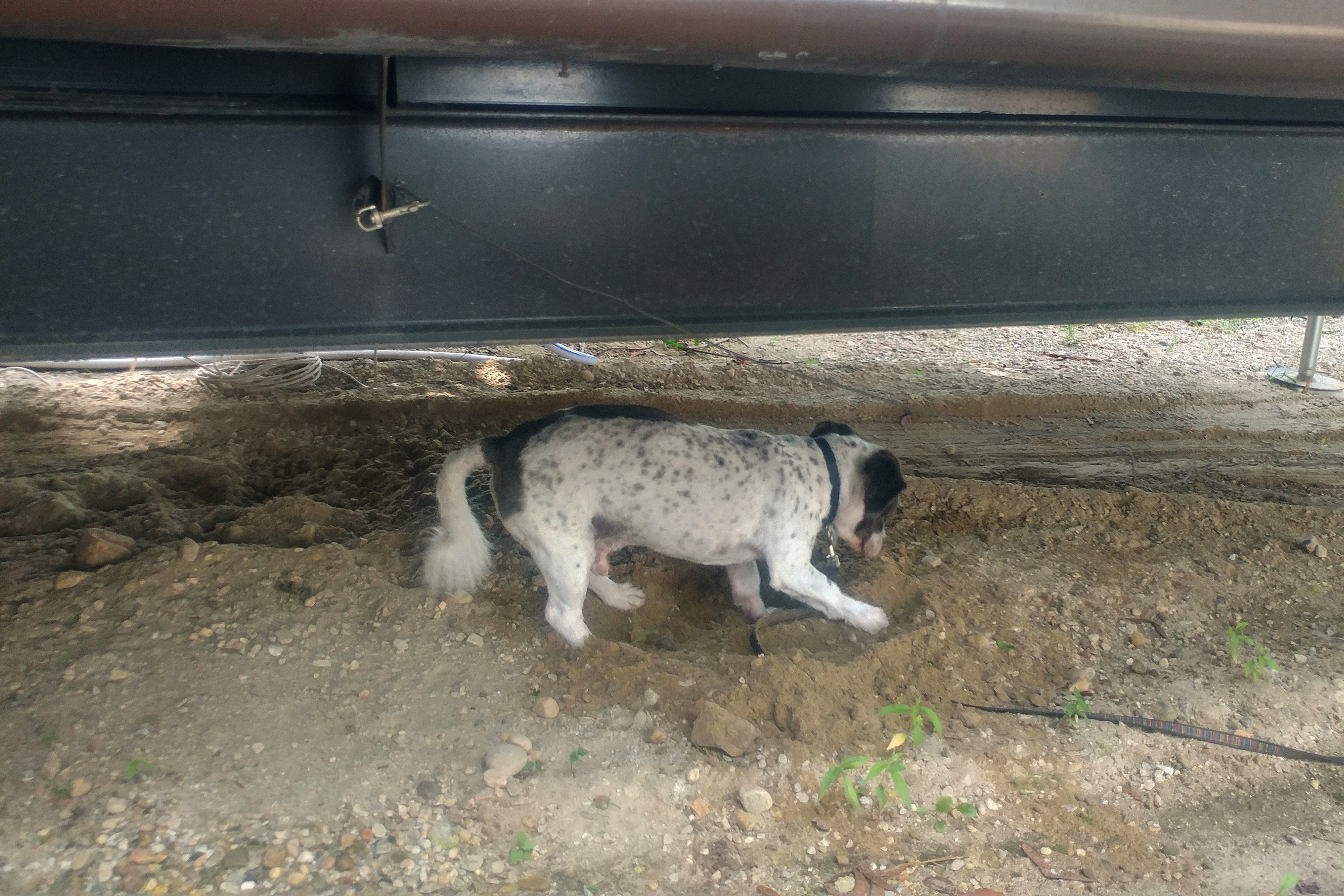 The biggest problem with the site: the sand. Apparently a tree was removed before we arrived, which left a hole in the ground. The hole was filled and then the entire site was covered in sand. Not gravel, like many other sites, but sand. We had great difficulty getting the RV positioned because it sank into the sand. It was like parking the RV on the beach. Worse, the sand is tracked into the RV every time we enter. We have swept about a bushel of sand out of the RV this summer. Not pleasant at all.We put down a second outdoor carpet and that helped, but it hasn’t eliminated the problem. We have already told the office staff that if we return next year we will want gravel put over the sand.