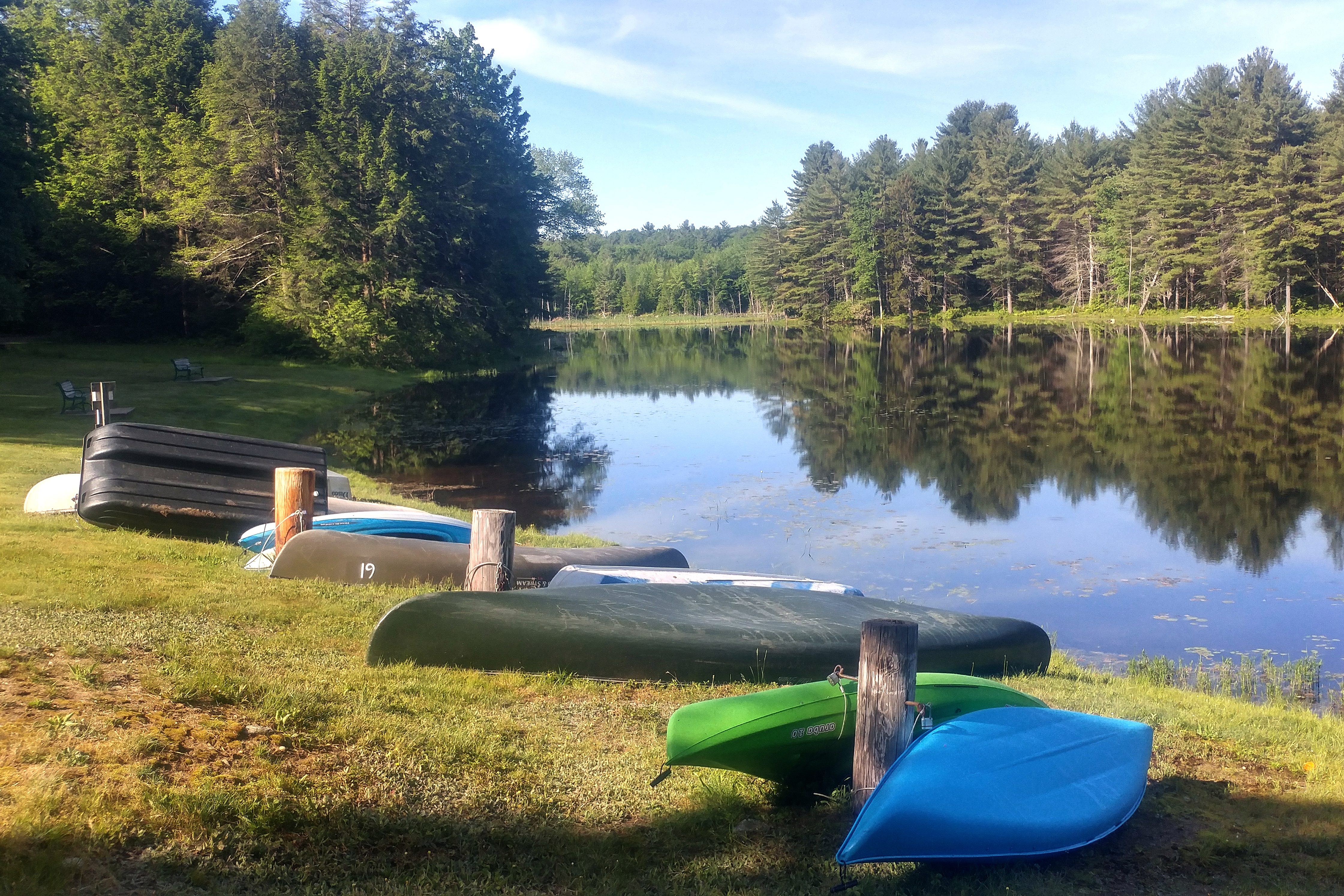 The is the most “weekend” place that we have stayed at for an entire season. Seasonal campgrounds tend to attract long-term campers, but this campground seems to be about 90% families who are in residence only on weekends. During the week the place is a ghost town. I walk the dog on weekday mornings and see not a single living soul. At night it gets downright spooky. It is us and the mosquitos.