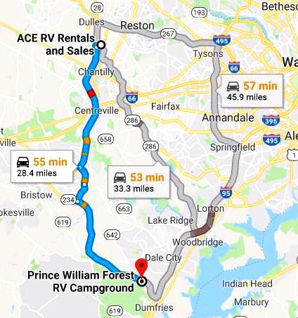 This was a short hop from ACE RV to the Prince William Forest Campground. It marked the end of our disaster recovery. Or the start of the next disaster recovery. Or both.