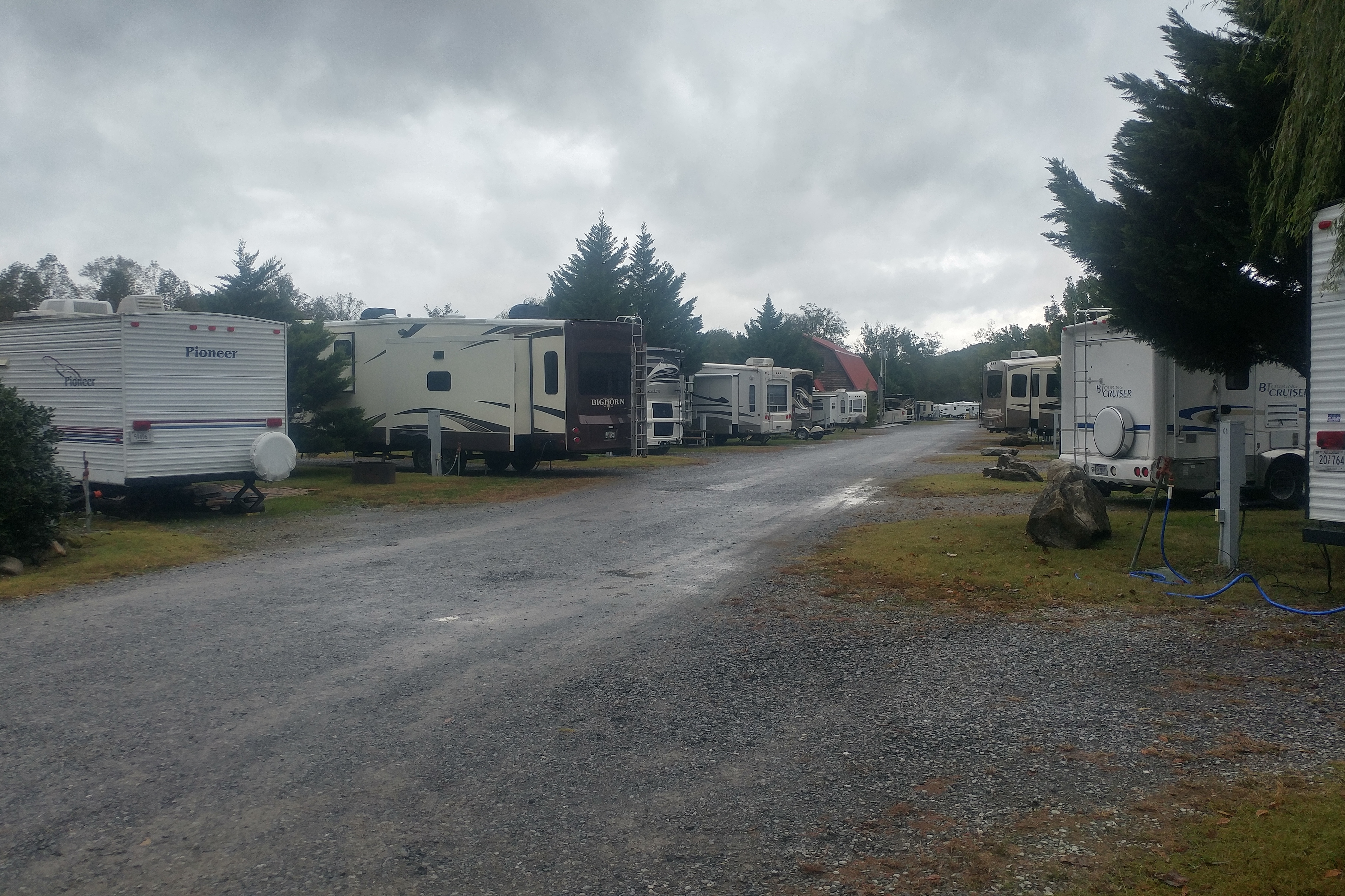 Our two nights – reduced from the original planned 3 nights due to the truck’s turbo problem – in Walland were at the Whispering River RV Resort. This is a park with very nice facilities – one of the most attractive offices that I have ever seen and a very nice bathhouse/laundry room. It also had a very good cable TV system. What it didn’t have was Verizon connectivity – it was as bad as Chenango Shores. We couldn’t reliably make phone calls and had very spotty internet service. The campground has WiFi, but it was heavily used and very slow. It was also very cold – in the low 50’s for highs – both days, but I can’t fault the campground for the lousy weather.Walland itself is a hole in the wall. It is very rural. We had to go over 7 miles into Maryville to get fuel. But Walland does have the Snoring Bear Diner, a cute little place serving very tasty pancakes and eggs. The service was outstanding and we both enjoyed our meals very much. It was definitely the best of Walland. If you are ever in Walland TN (and why would you be?), stop by the Snoring Bear.