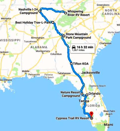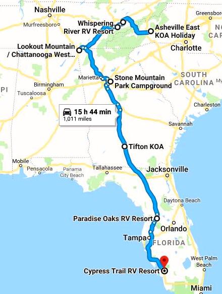 The Escapees rally was a change to our plan we had originally expected to stop in Homosassa Springs to see the manatees again, but when we saw that Escapees Chapter 57 was having a rally that week in Bushnell we joined the chapter and jumped at the chance to participate in the rally. That, along with the very nice visit with friends Roy and Patricia in Tellico Village TN, the Civil War sites in Chattanooga and the pleasant stay at Stone Mountain Campground, turned out to be the highlights of Segment 2.